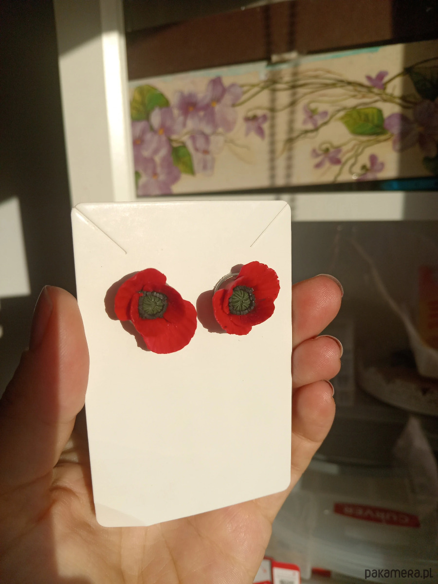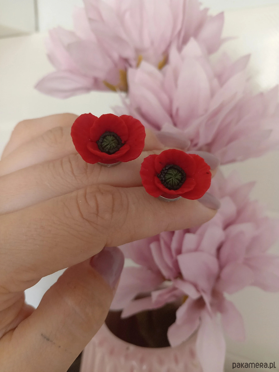 Ręcznie robione kolczyki maki z gliny polimerowej