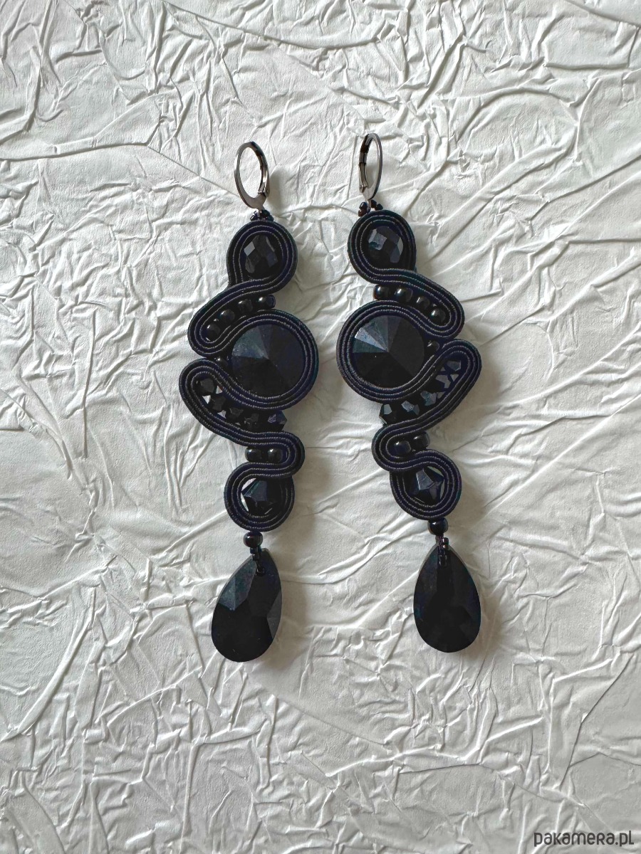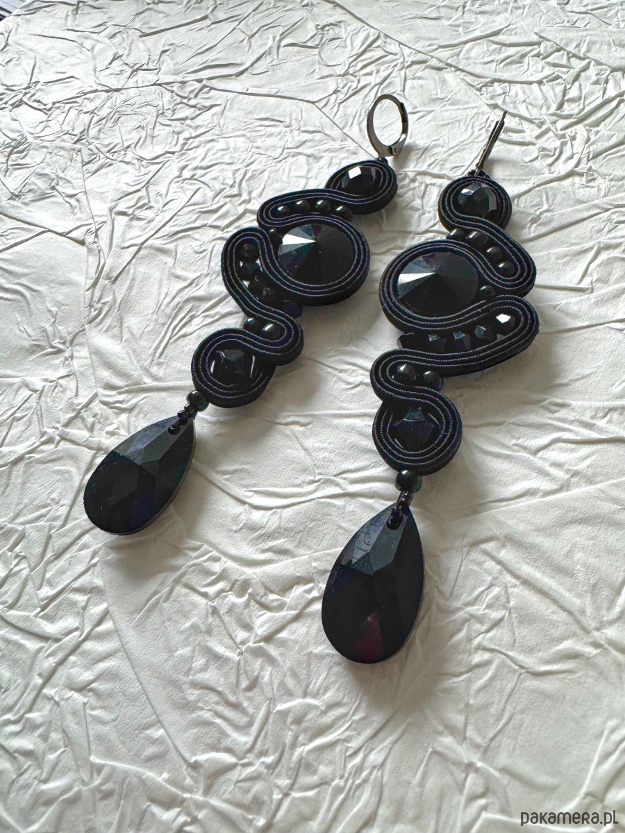 Ręcznie robione kolczyki sutasz czarne z kryształami