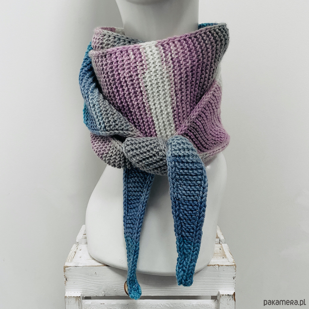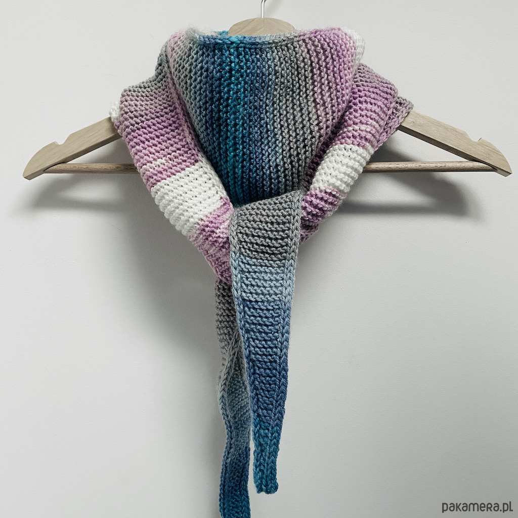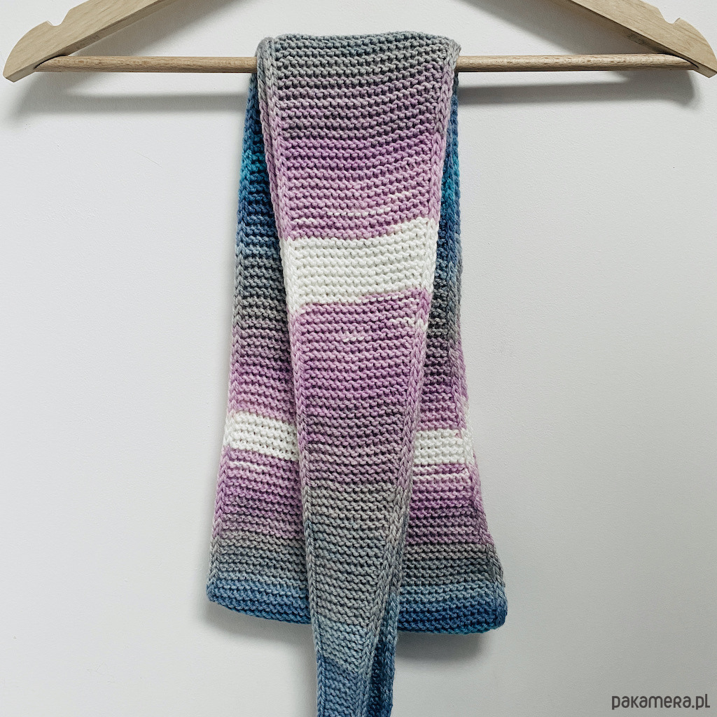 Szalik wykonałam ręcznie na drutach z wysokiej jakości, miękkiej włóczki akrylowej, która zapewnia wygodę noszenia przez cały dzień.