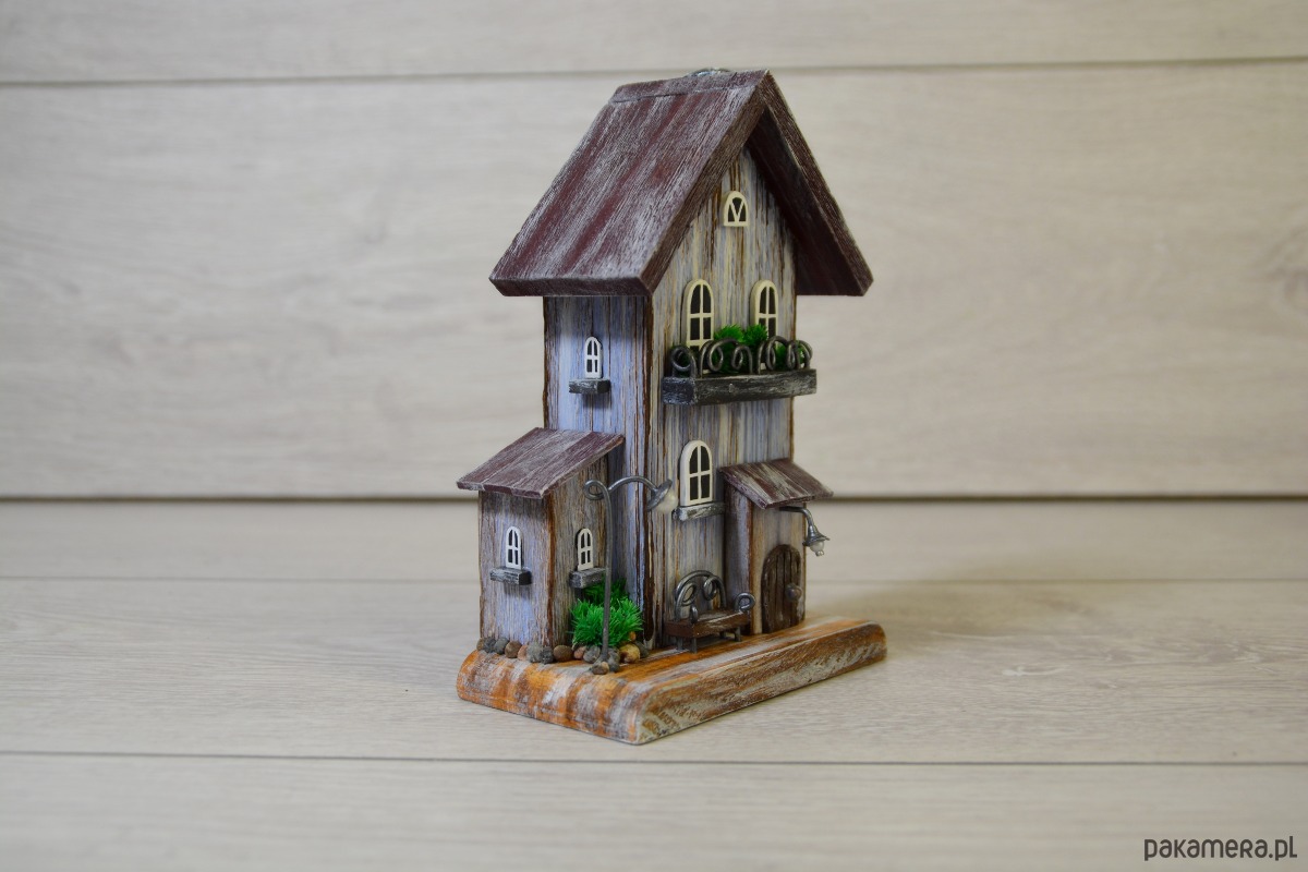 Drewniany dom, który będzie pięknym dodatkiem do każdego wnętrza, ogrodu lub patio.