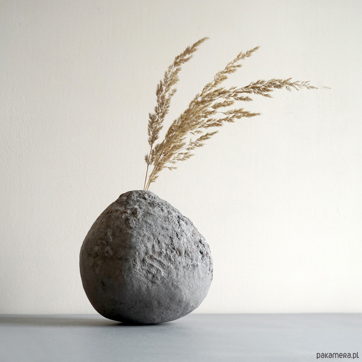 Wazon został wykonany ręcznie z masy papierowej w jednym egzemplarzu.