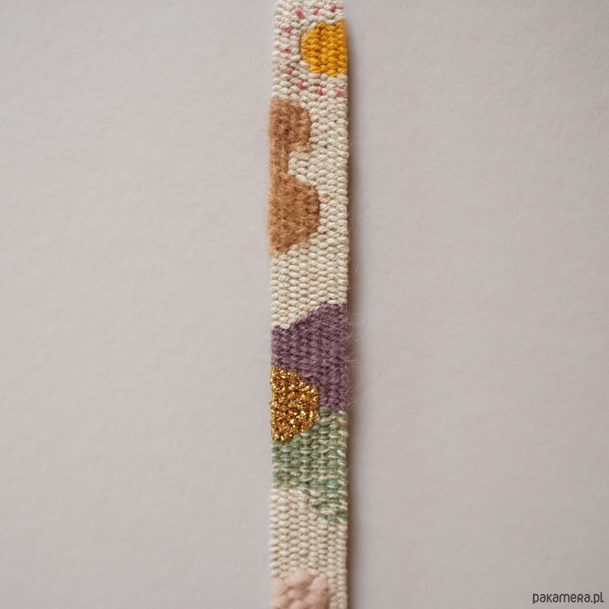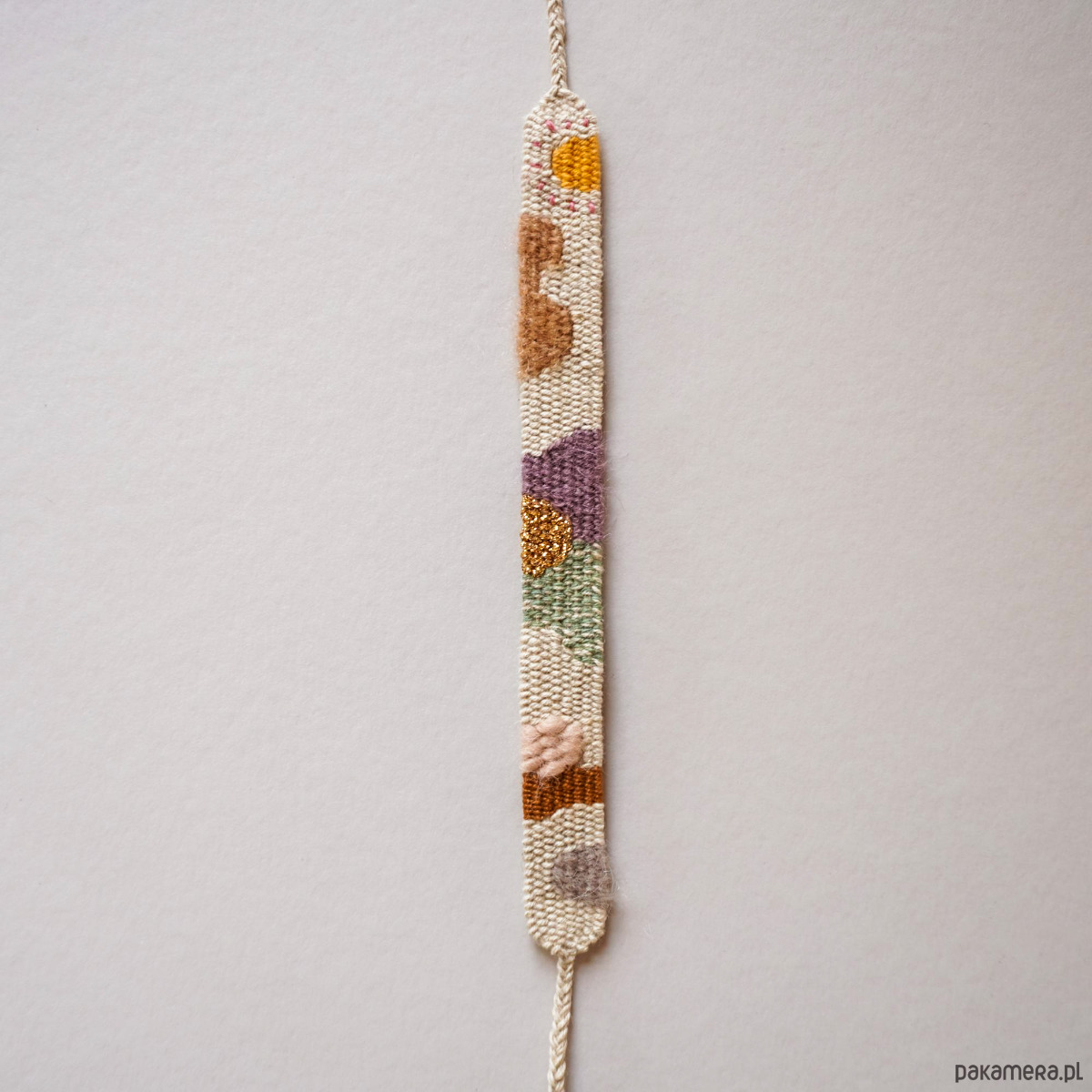 Wyjątkowa bransoleteka ręcznie tkana. Wzór i kolorystyka inspirowane były widokiem wzgórków, pagórków, pól i lasów z góry. Dla mnie to miłe wspomnienie lotu samolotem ale interpretacja jest zawsze dowolna 😉. Szerokość części tkanej to niecałe 1,5 cm, długość części tkanej to około 14, 15 cm. Bransoletkę wiąże się samodzielnie na supełek. Polecam gorąco♡. Bransoletki są estetycznie zapakowane, więc idealnie nadają się na prezent.