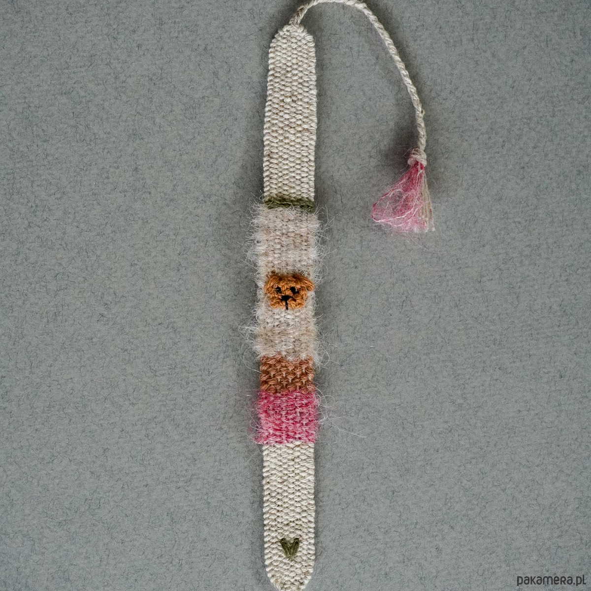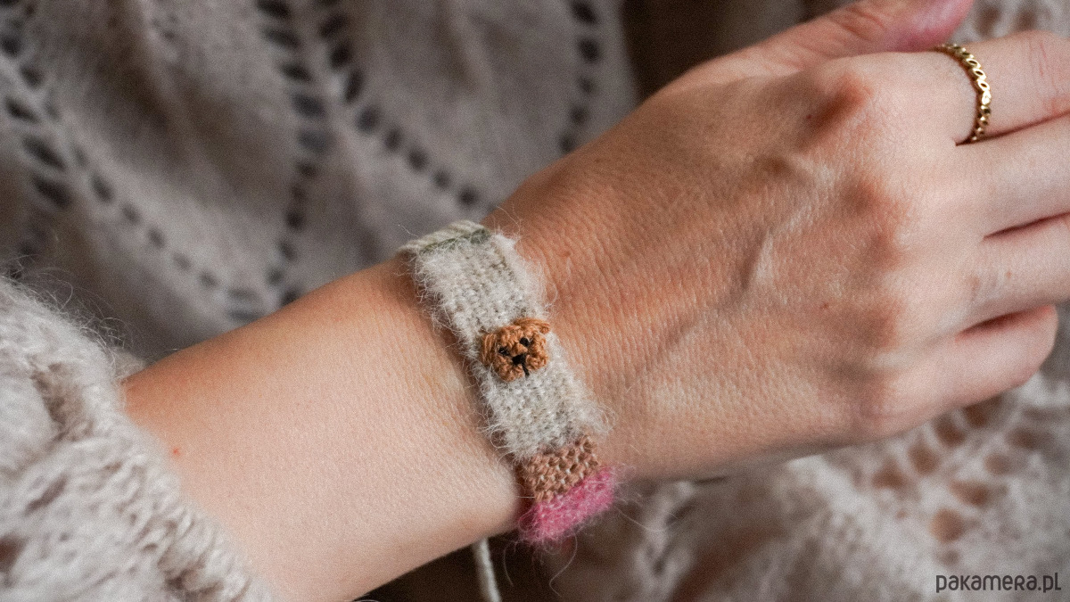 Bransoletka wykonana na krośnie z haftowanym pieskiem