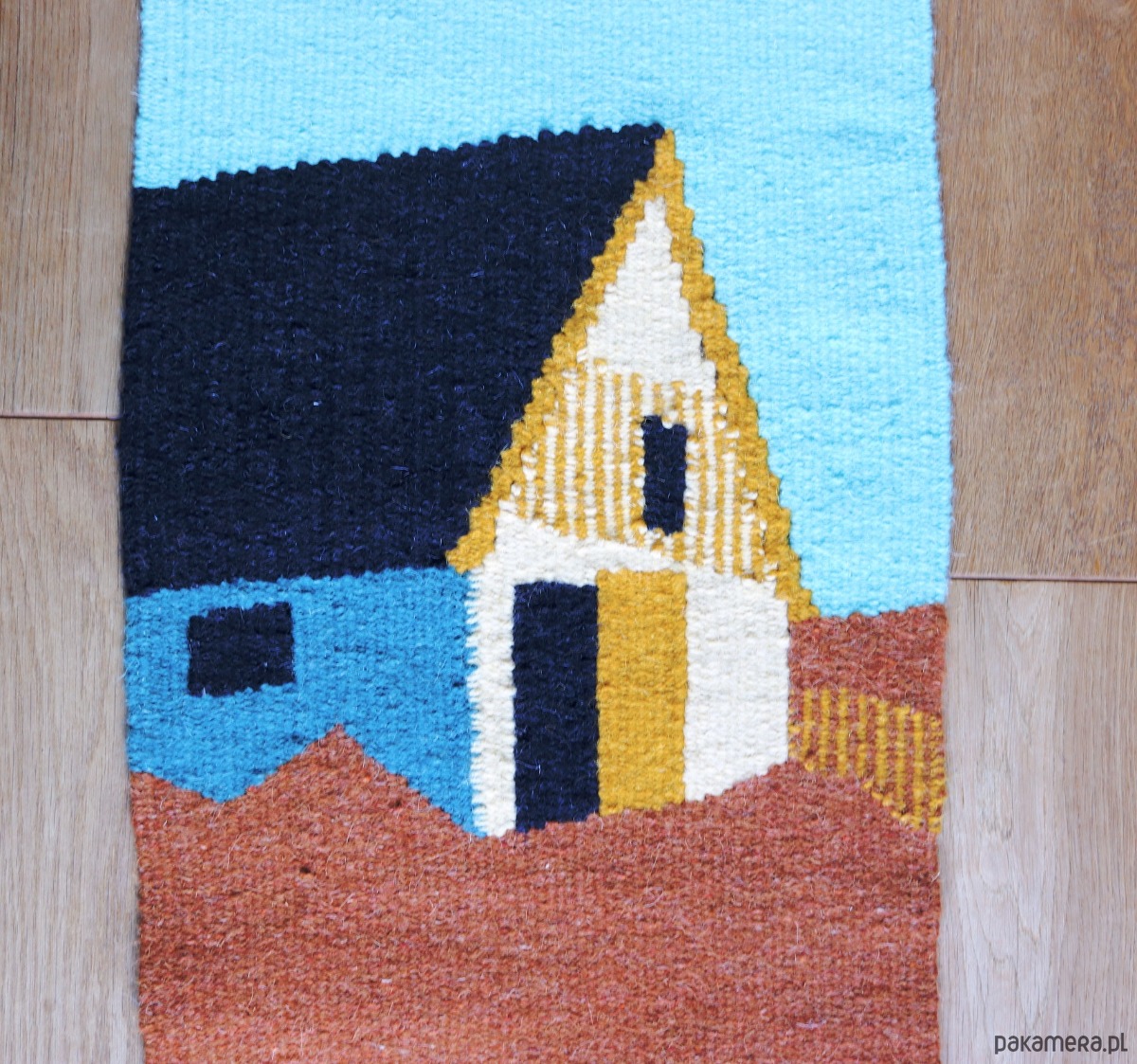 Ręcznie tkany kilim - wełniana makatka - MAZURSKIA OBORA