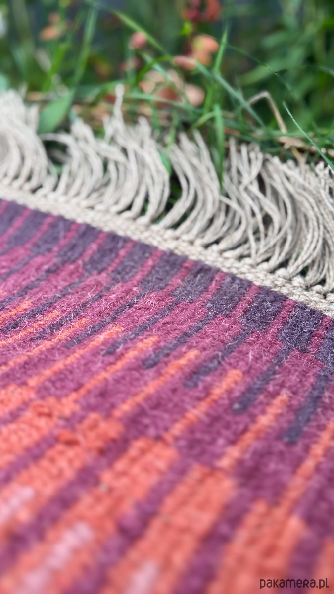 Materiały: wełna (wątek), polski len (osnowa). Nasza wełna pochodzi w 100 % z recyklingu (więcej w naszej historii!).