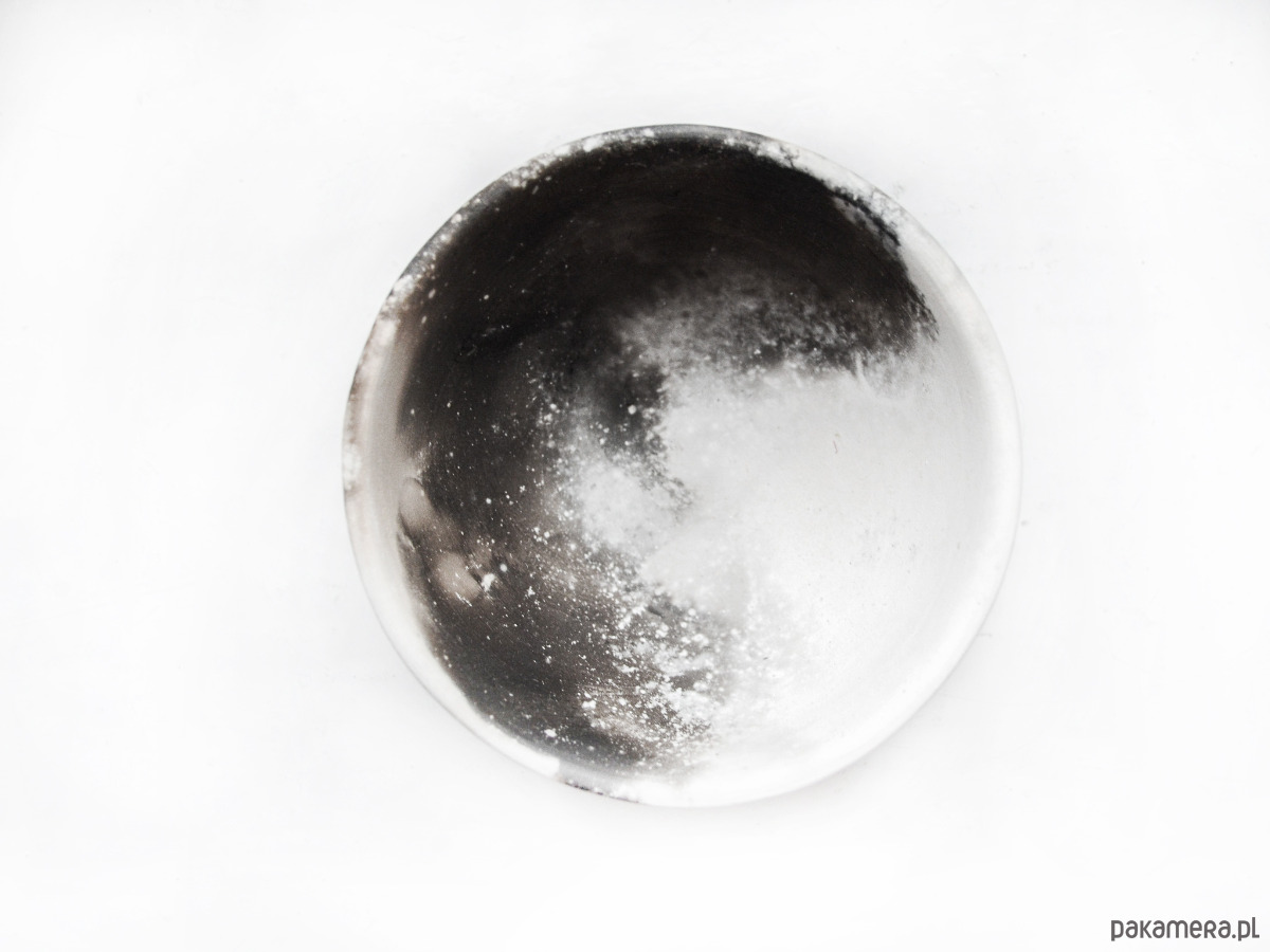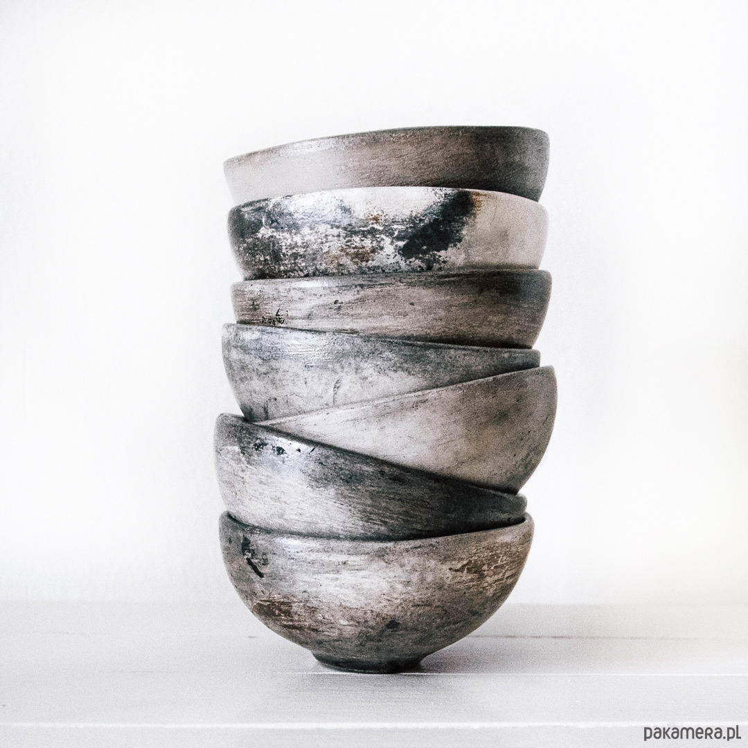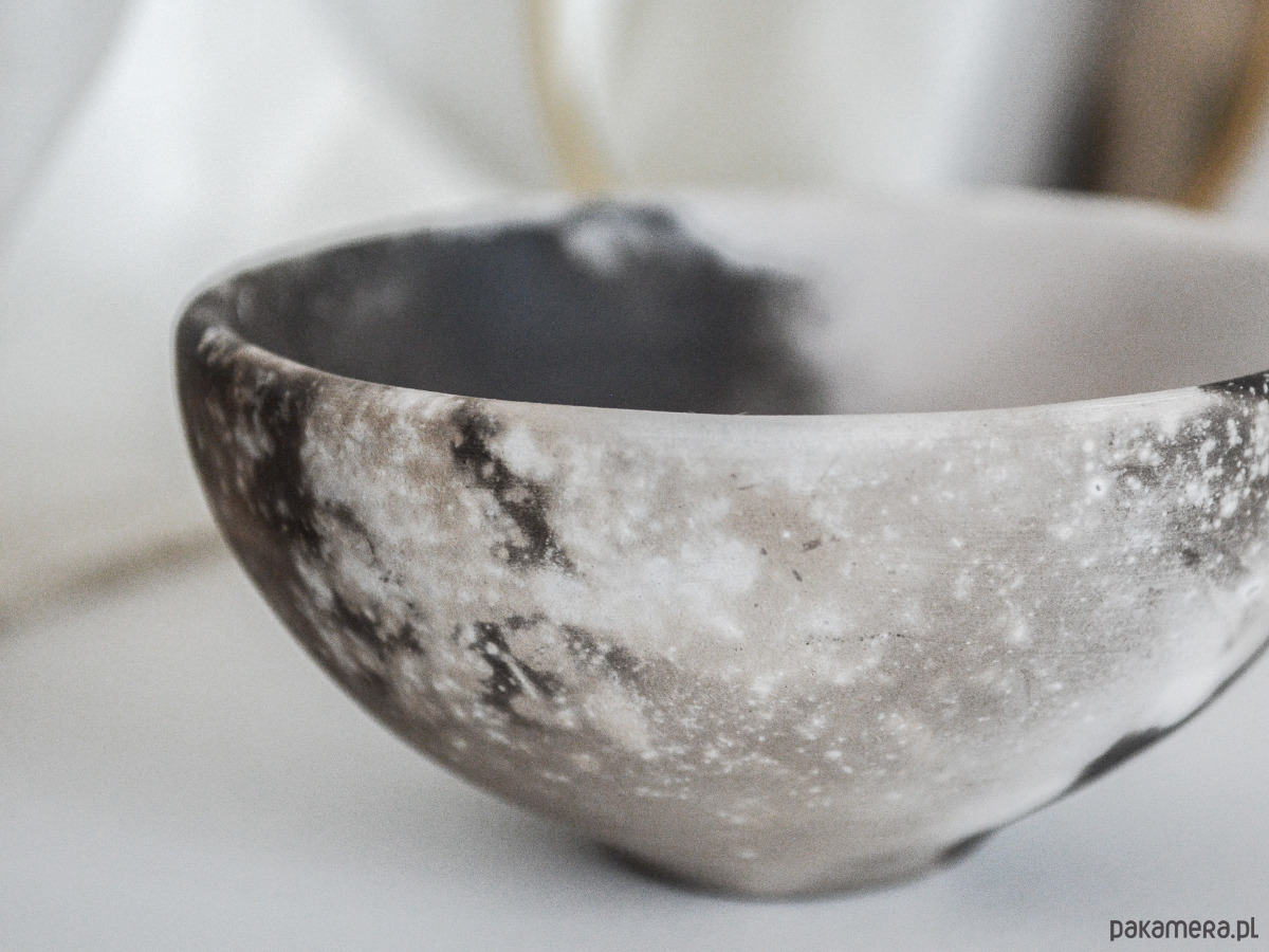 Powierzchnia została wypolerowana na satynowy połysk, zachowując jednocześnie surowy wygląd nieszkliwionej ceramiki. Całość zabezpieczona jest bezpieczną powłoką, dzięki której miska nie chłonie wody i świetnie nadaje się do codziennego użytkowania.