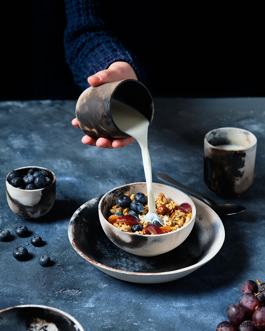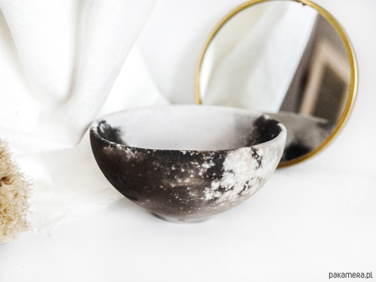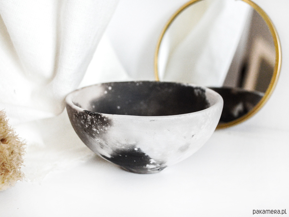 Powierzchnia została wypolerowana na satynowy połysk, zachowując jednocześnie surowy wygląd nieszkliwionej ceramiki. Całość zabezpieczona jest bezpieczną powłoką, dzięki której miska nie chłonie wody i świetnie nadaje się do codziennego użytkowania.