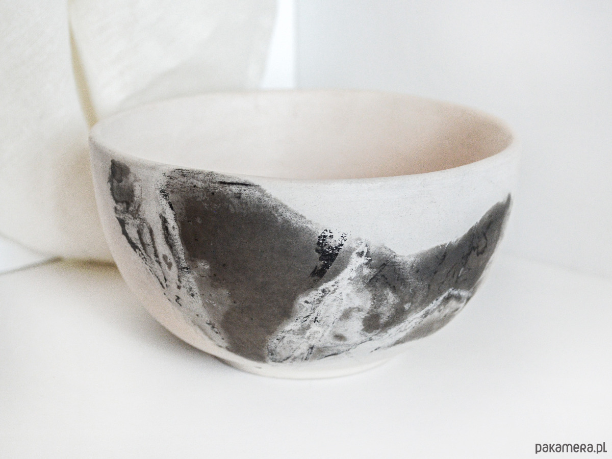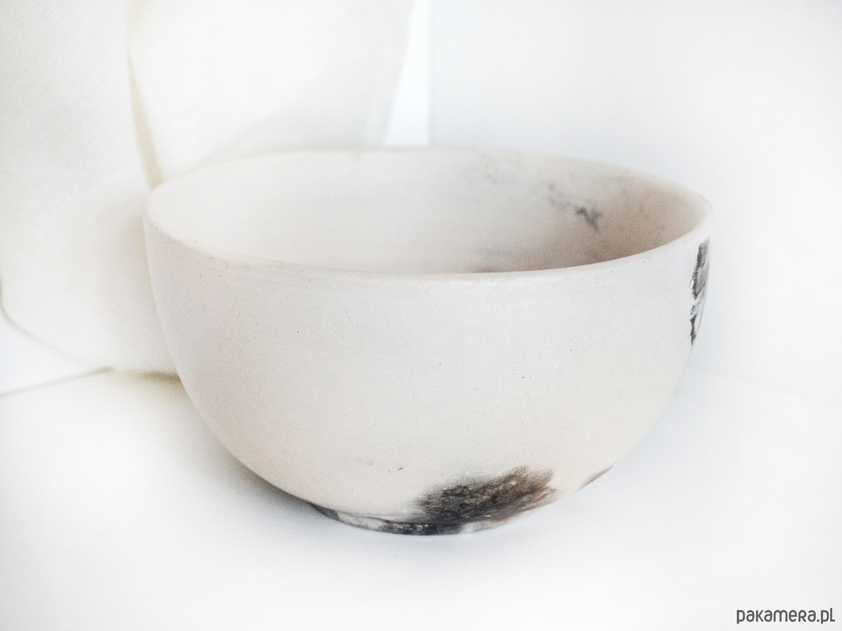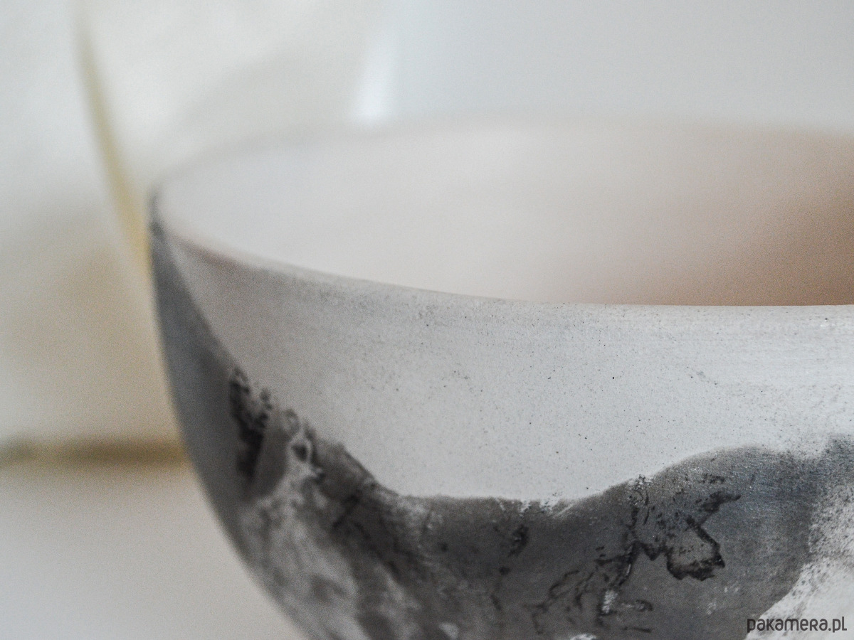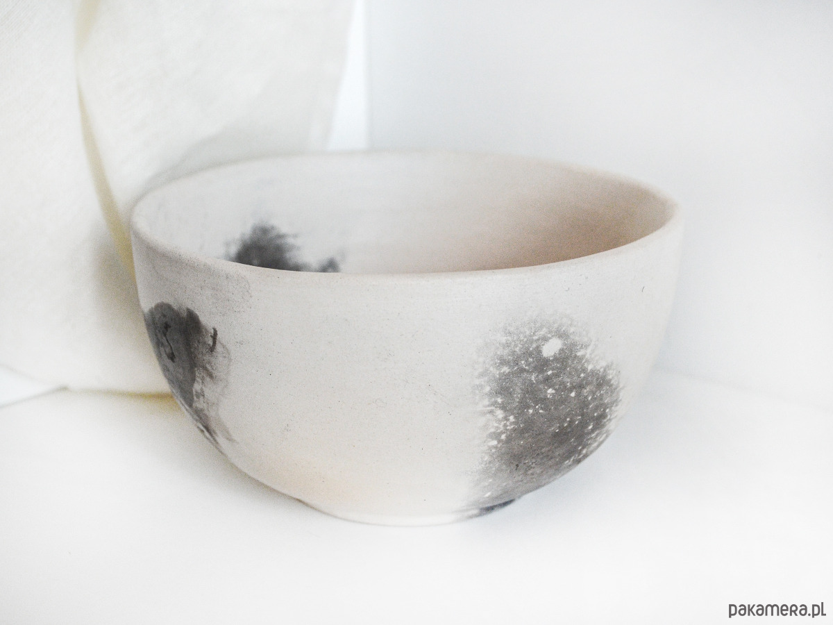 Powierzchnia została wypolerowana na satynowy połysk, zachowując jednocześnie surowy wygląd nieszkliwionej ceramiki. Całość zabezpieczona jest bezpieczną powłoką, dzięki której miska nie chłonie wody i świetnie nadaje się do codziennego użytkowania.