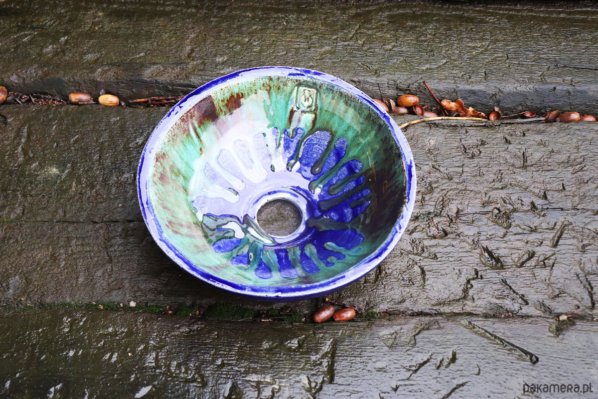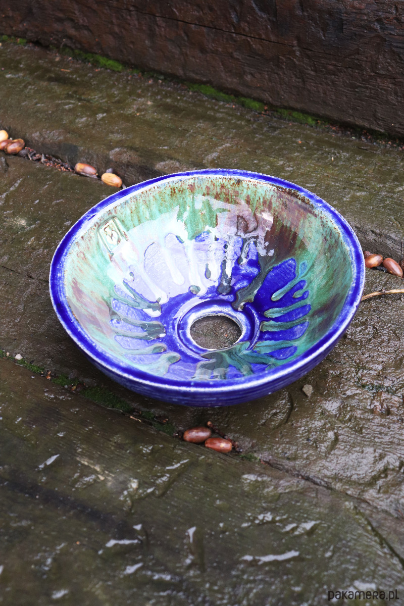 Ręcznie wykonana umywalka ceramiczna unikatowa - Granat i Turkus