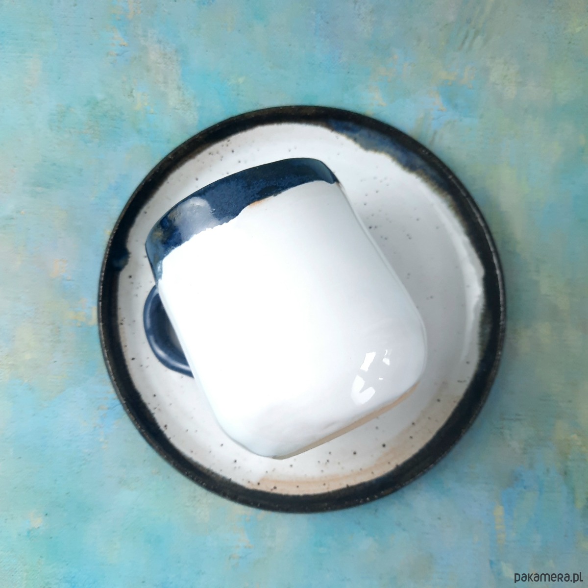 Ręcznie wykonany kubek z talerzykiem E 100% handmade ceramika