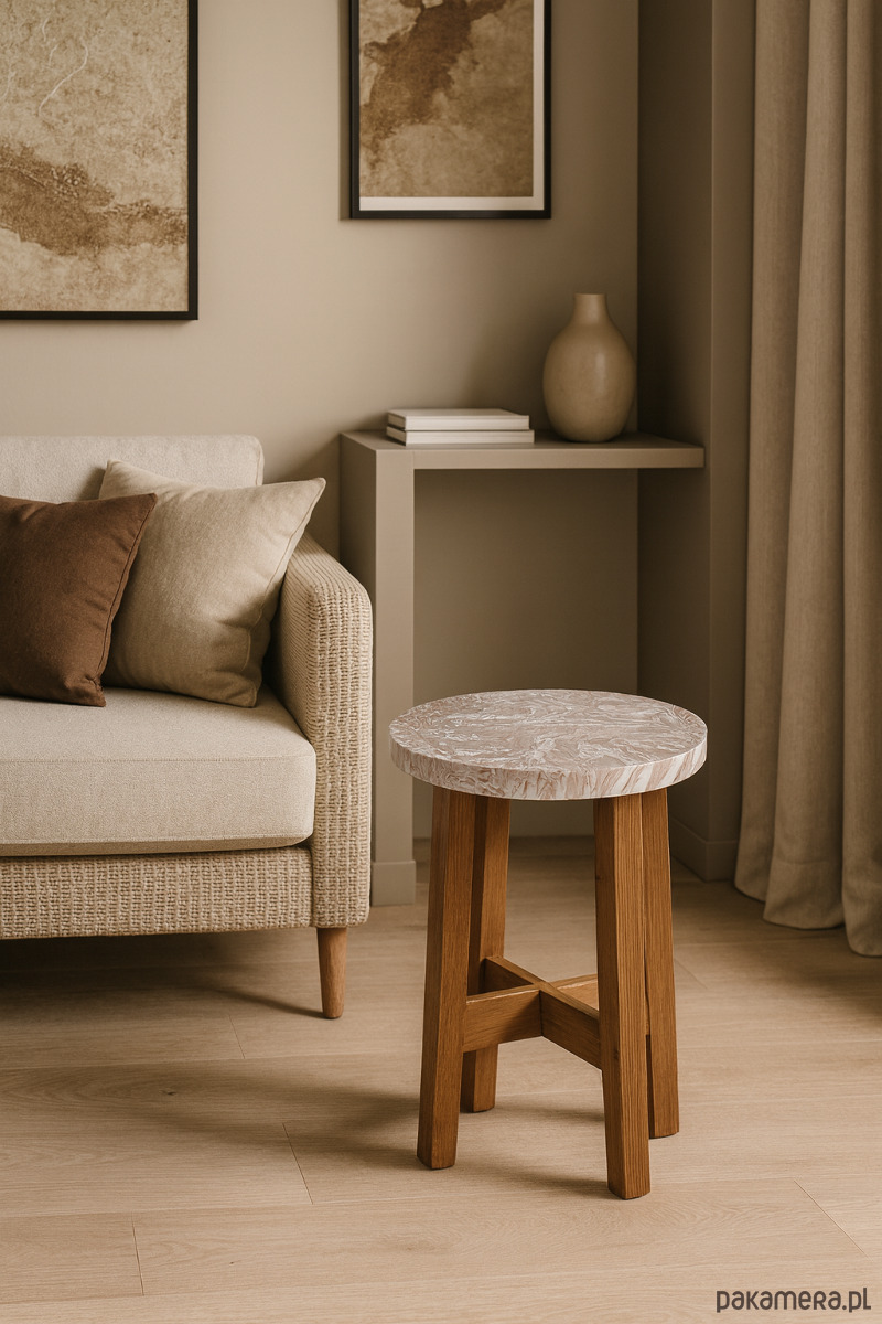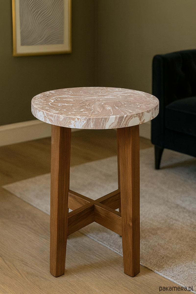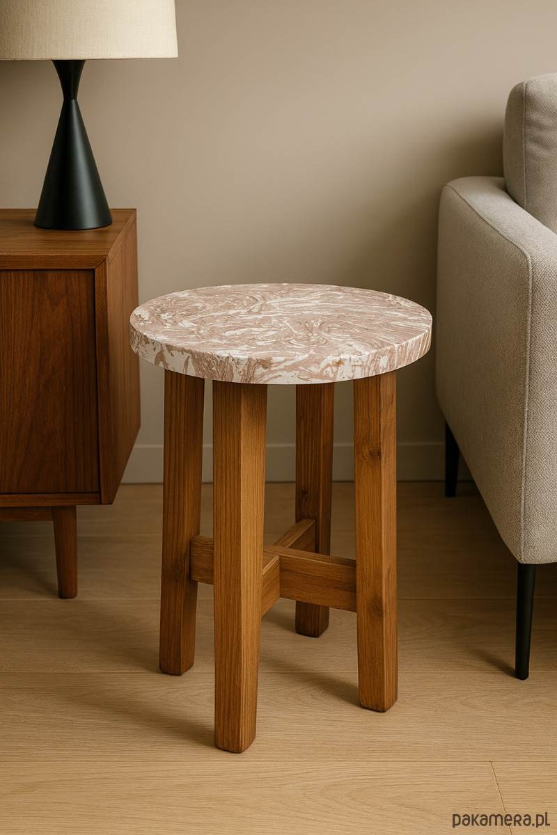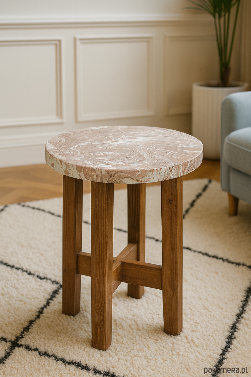 Ręcznie wykonany stołek z litego drewna z zabezpieczonym blatem