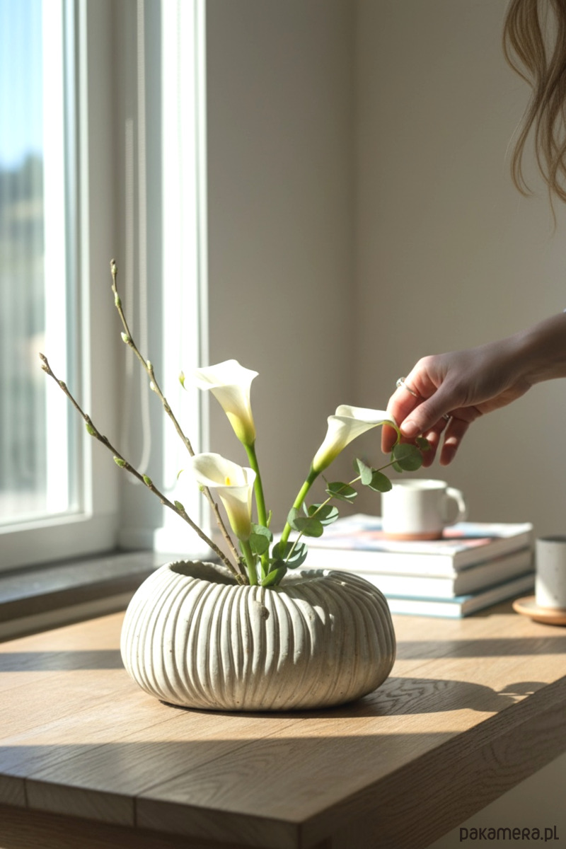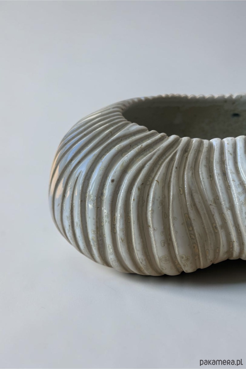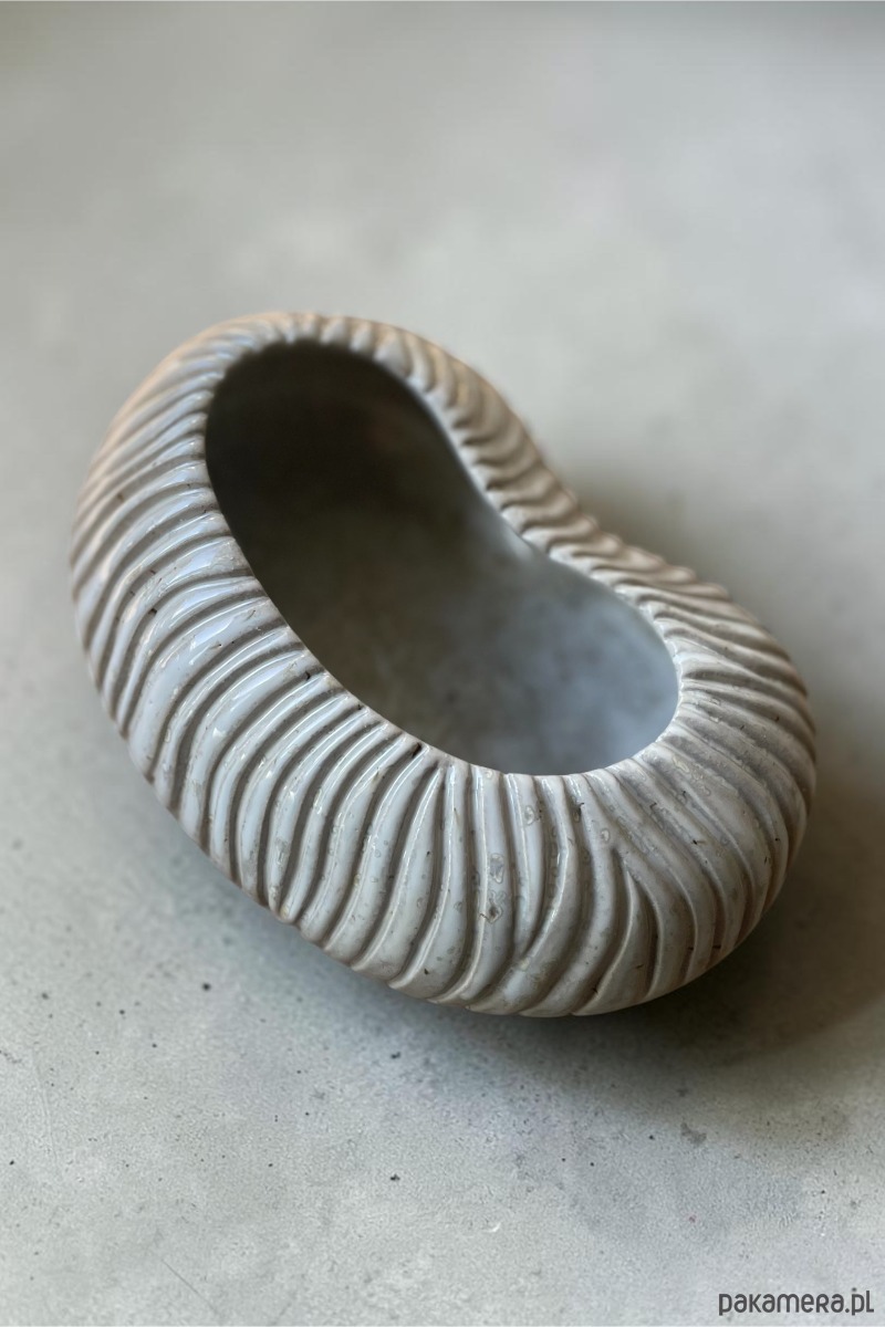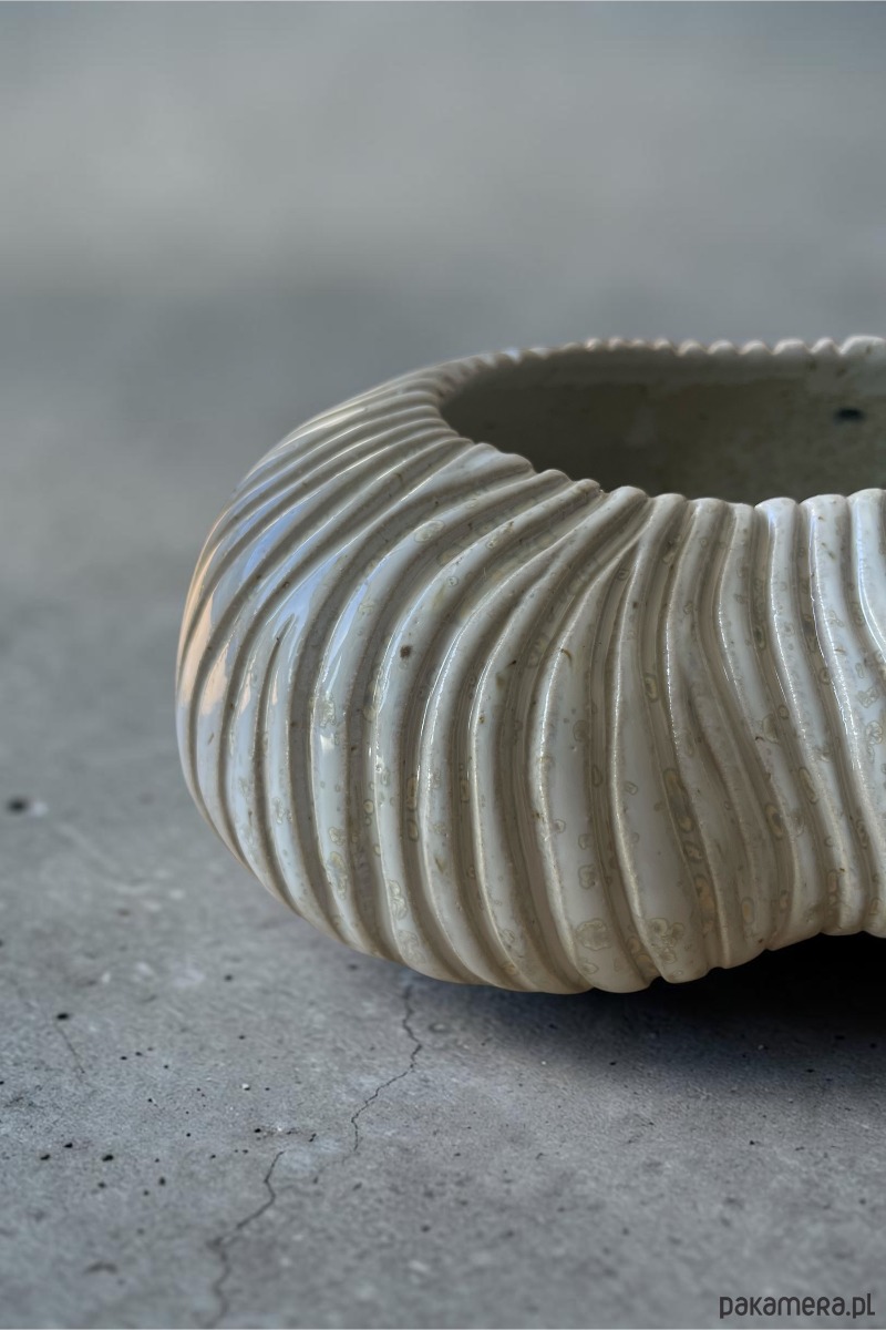 Rzeźbiarska forma łączy się z funkcjonalnością. Nieregularny wzór, przypominający muszle morskie, odbija światło i tworzy delikatną grę cieni. Organiczny kształt i naturalne, lekko surowe wykończenie sprawiają, że idealnie pasuje do minimalistycznych i japońskich wnętrz. Piękny zarówno solo, jak i z pojedynczą gałązką lub delikatnym bukietem.