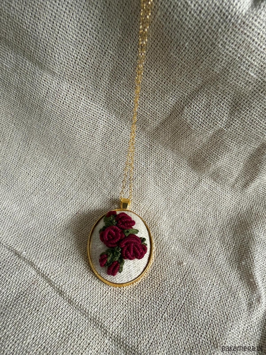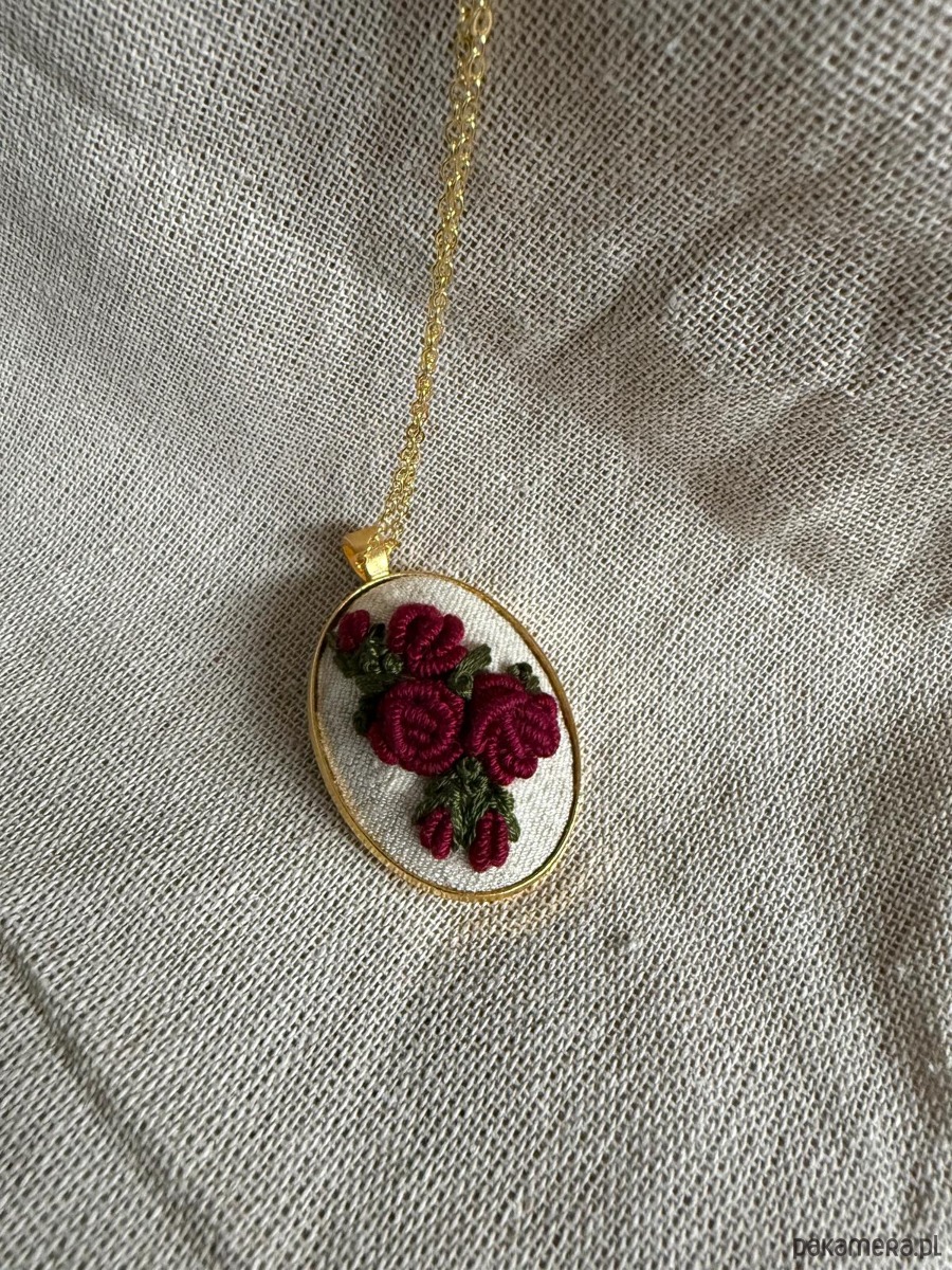 Poszukujesz nietuzinkowej biżuterii lub wyjątkowego prezentu dla żony, mamy, córki, babci, przyjaciółki ? Ten ręcznie wyszywany naszyjnik będzie idealnym wyborem ! Każdy naszyjnik wykonywany jest w pojedynczym egzemplarzu, dzięki czemu masz pewność, że nikt nie będzie posiadał takiego samego ! Haft wykonany na materiale bawełnianym w kolorze kremu, wyszywany mulina bawełniana w pięknych kolorach. Medalion ze stali w kolorze złota, długi łańcuszek w tym samym kolorze.