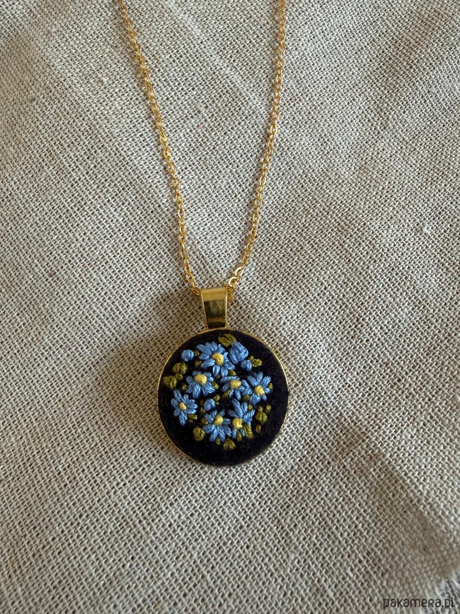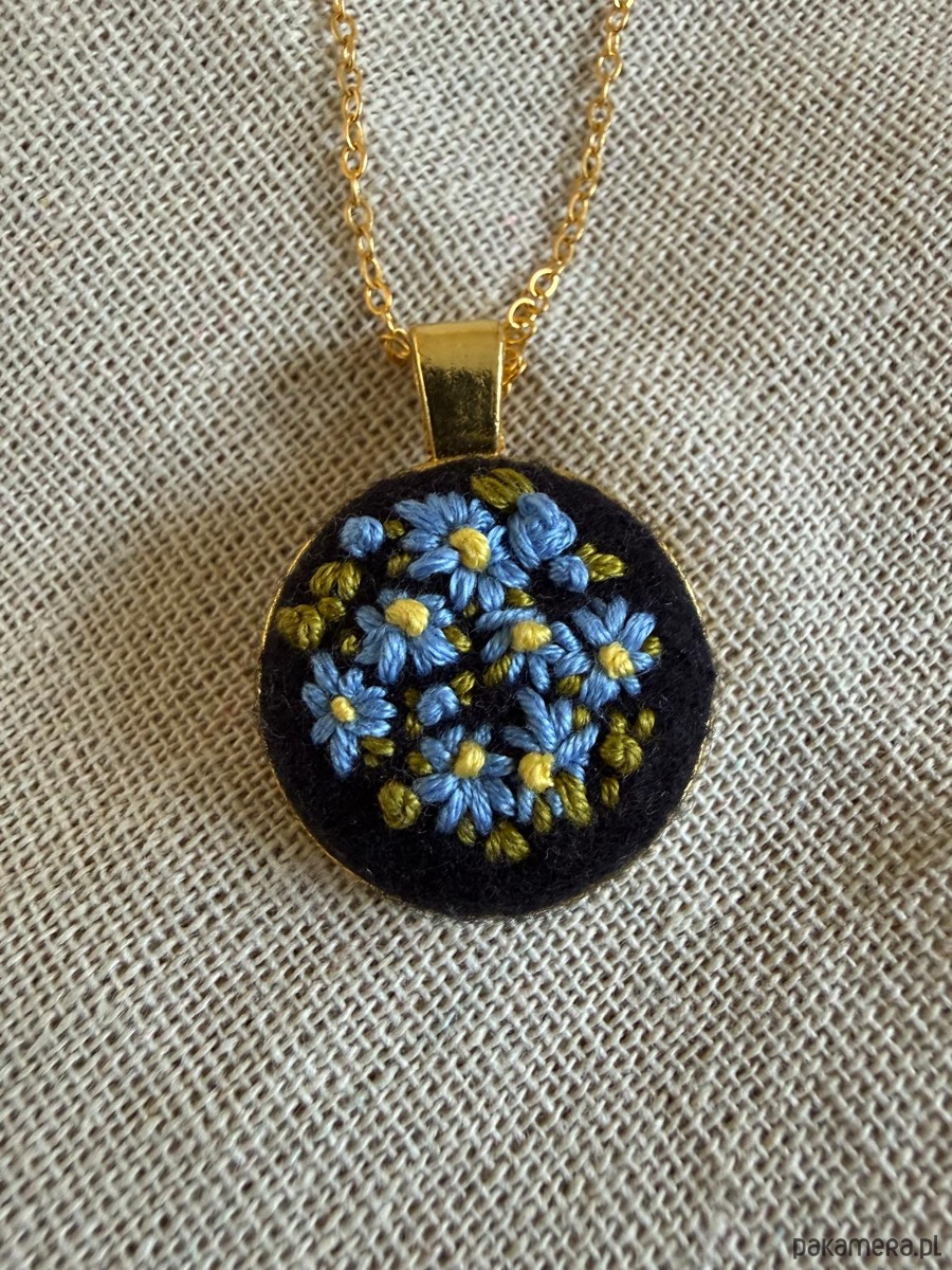 Ręcznie wyszywany naszyjnik "Niezapominajki"