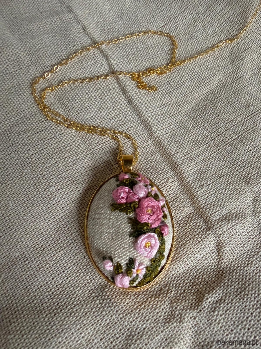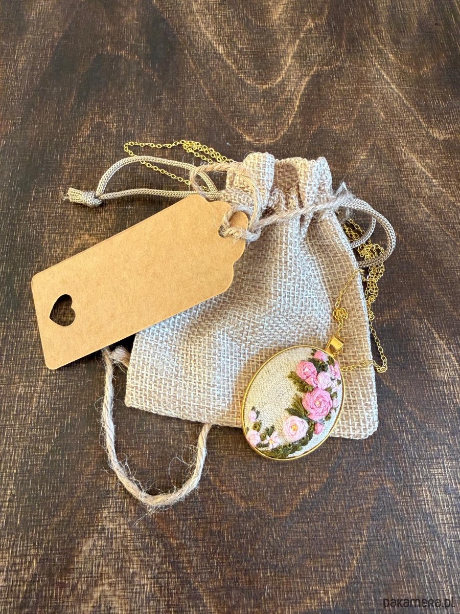 Ręcznie wyszywany naszyjnik "Różowe kwiaty"