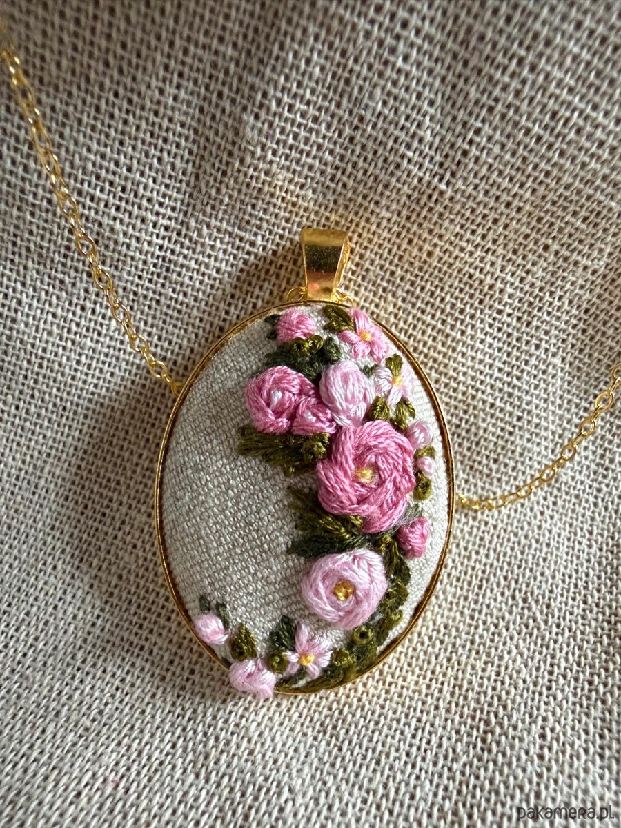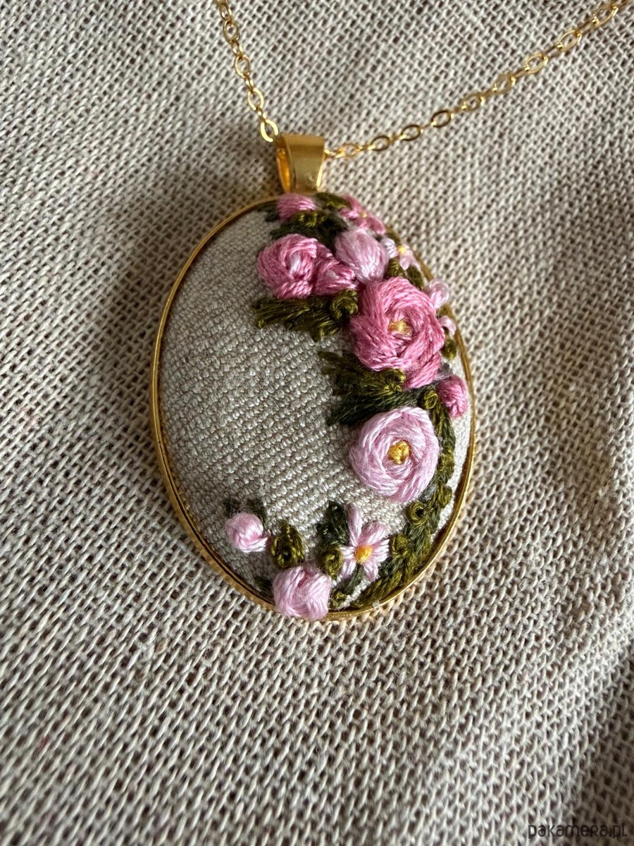 Poszukujesz nietuzinkowej biżuterii lub wyjątkowego prezentu dla żony, mamy, córki, babci, przyjaciółki ? Ten ręcznie wyszywany naszyjnik będzie idealnym wyborem ! Każdy naszyjnik wykonywany jest w pojedynczym egzemplarzu, dzięki czemu masz pewność, że nikt nie będzie posiadał takiego samego ! Haft wykonany na materiale bawełnianym w kolorze kremu, wyszywany mulina bawełniana w pięknych kolorach. Medalion ze stali w kolorze złota, długi łańcuszek w tym samym kolorze.