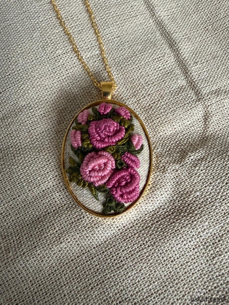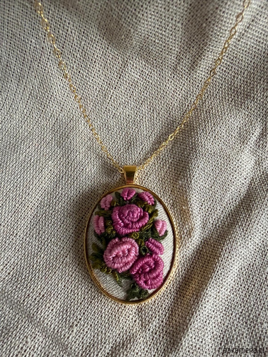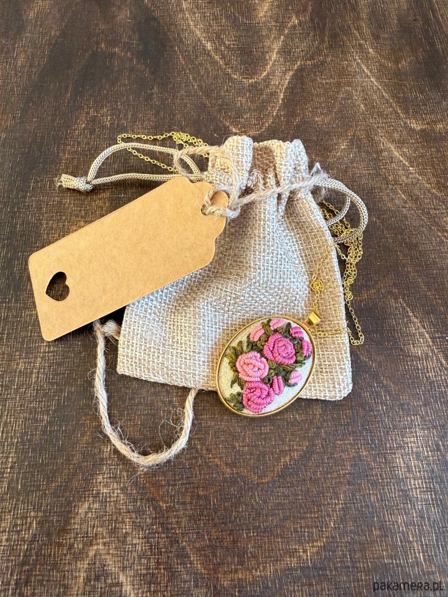 Poszukujesz nietuzinkowej biżuterii lub wyjątkowego prezentu dla żony, mamy, córki, babci, przyjaciółki ? Ten ręcznie wyszywany naszyjnik będzie idealnym wyborem ! Każdy naszyjnik wykonywany jest w pojedynczym egzemplarzu, dzięki czemu masz pewność, że nikt nie będzie posiadał takiego samego ! Haft wykonany na materiale bawełnianym w kolorze kremu, wyszywany mulina bawełniana w pięknych kolorach. Medalion ze stali w kolorze złota, długi łańcuszek w tym samym kolorze.