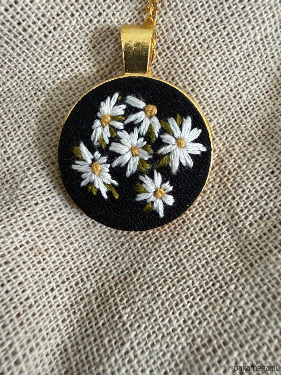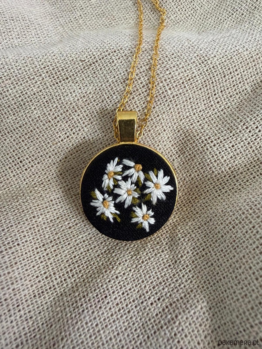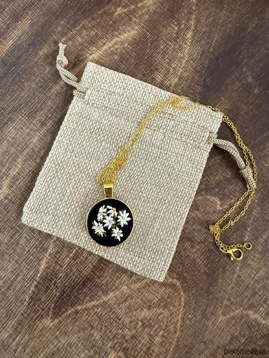 Ręcznie wyszywany naszyjnik "Stokrotki"
