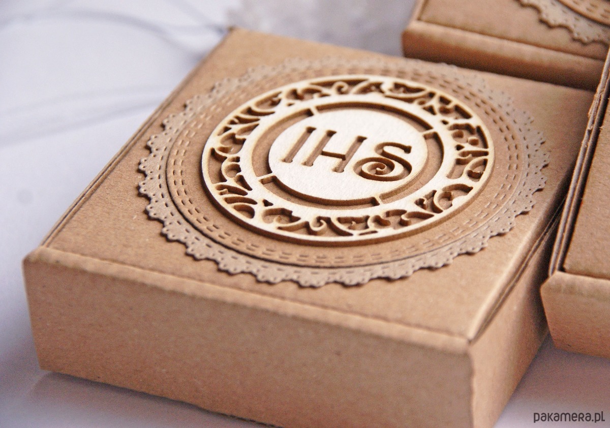 eko-pudełeczko ozdobiłam najwyższej jakości tekturką oraz lekko przestrzennymi elementami wyciętymi z papieru kraftowego.