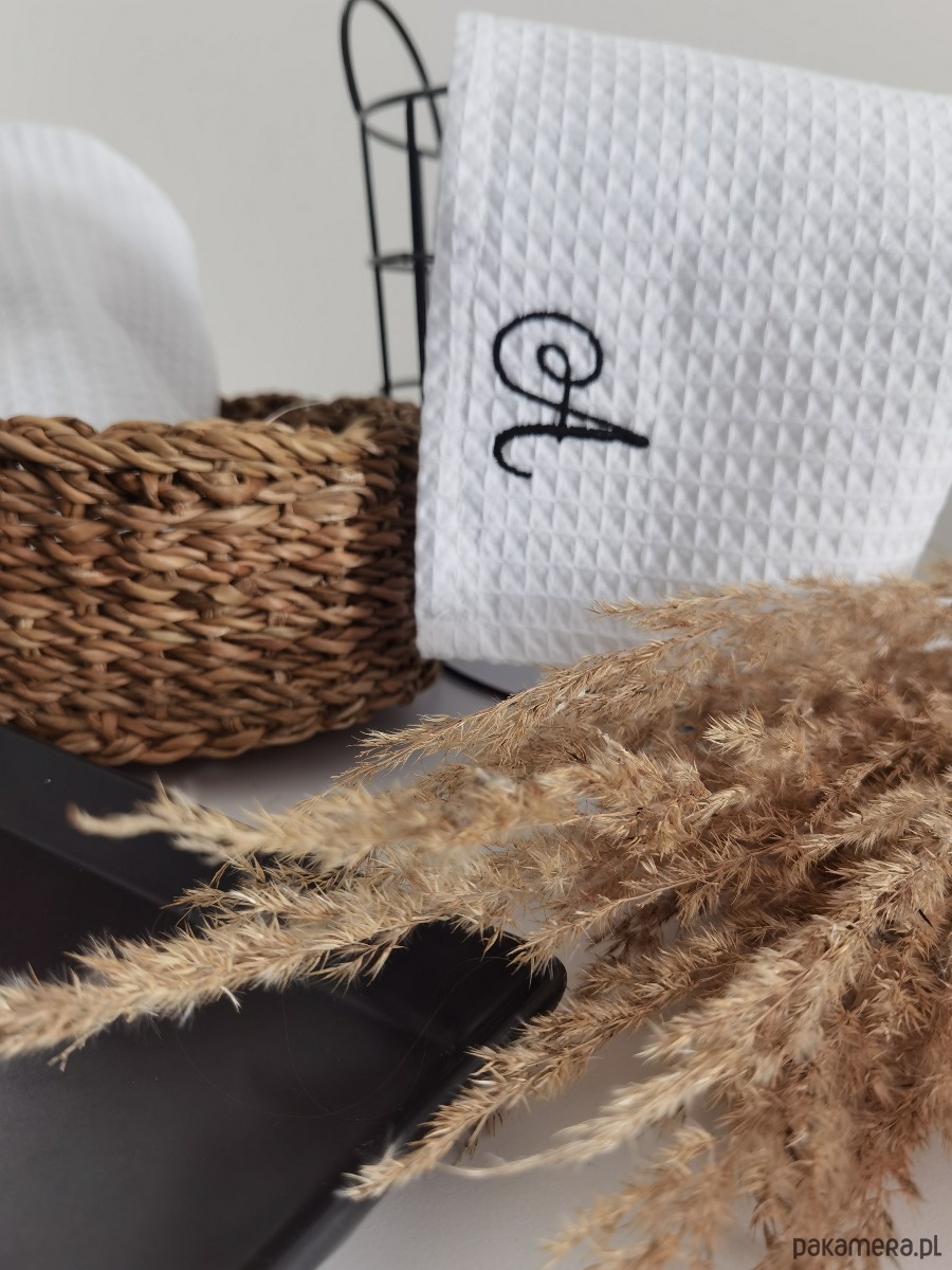 Warto mieć kilka ręczników na zmianę, dla domowników i gości. Choć można wybierać różne kolory, by każdy wiedział, który ręcznik jest jego, lepszym rozwiązaniem jest zachowanie spójnej estetyki w łazience i oznaczenie ręczników subtelnym haftem z imieniem lub inicjałami. Dzięki temu wnętrze pozostaje harmonijne, a każdy ma swój osobisty ręcznik. Haft wykonujemy w różnym stylu tak by pasował do łazienki. Kolor ręcznika, napisu również dopasowujemy do preferencji klienta. Podane w ofercie kolory są przykładowe, możemy zamówić dowolny odcień wafla. Do zamówienia tworzymy wizualizację napisów w różnych czcionkach.