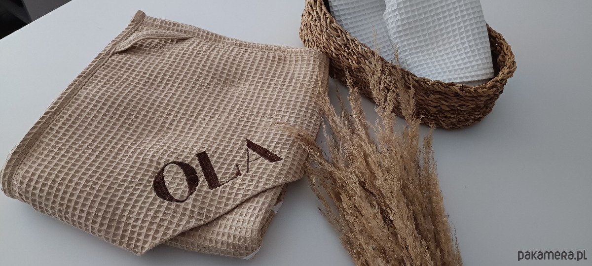 Do zamówienia należy podać kolor ręcznika, rozmiar, napis, styl czcionki i preferowany kolor. W odpowiedzi wyślemy wizualizację napisu w różnych czcionkach do wyboru oraz pasujące odcienie nici.