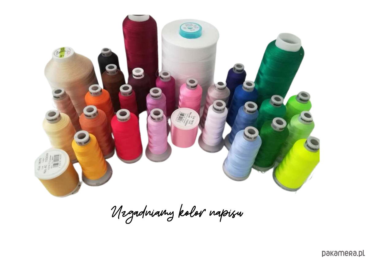Przed wykonaniem haftu wysyłamy kilka propozycji napisu w różnych czcionkach do wyboru. Ustalamy wszystkie szczegóły jak kolor ręczników, kolor haftów.