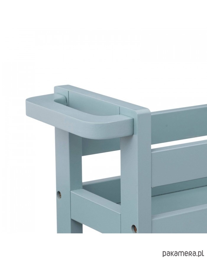 3 poziomowy regał łazienkowy został wykonany z MDFu. Bardzo przydatny mebelek do łazienki. Wyposażony został w kółka, co pozwala na łatwe jego przemieszczanie. Półki tak są skonstruowane, że nic z nich nie spadnie. Każda może być obciążona do 2 kg. Regał może być również postawiony w dziecięcym pokoju. Tu spełni rolę biblioteczki na zabawki, książeczki.