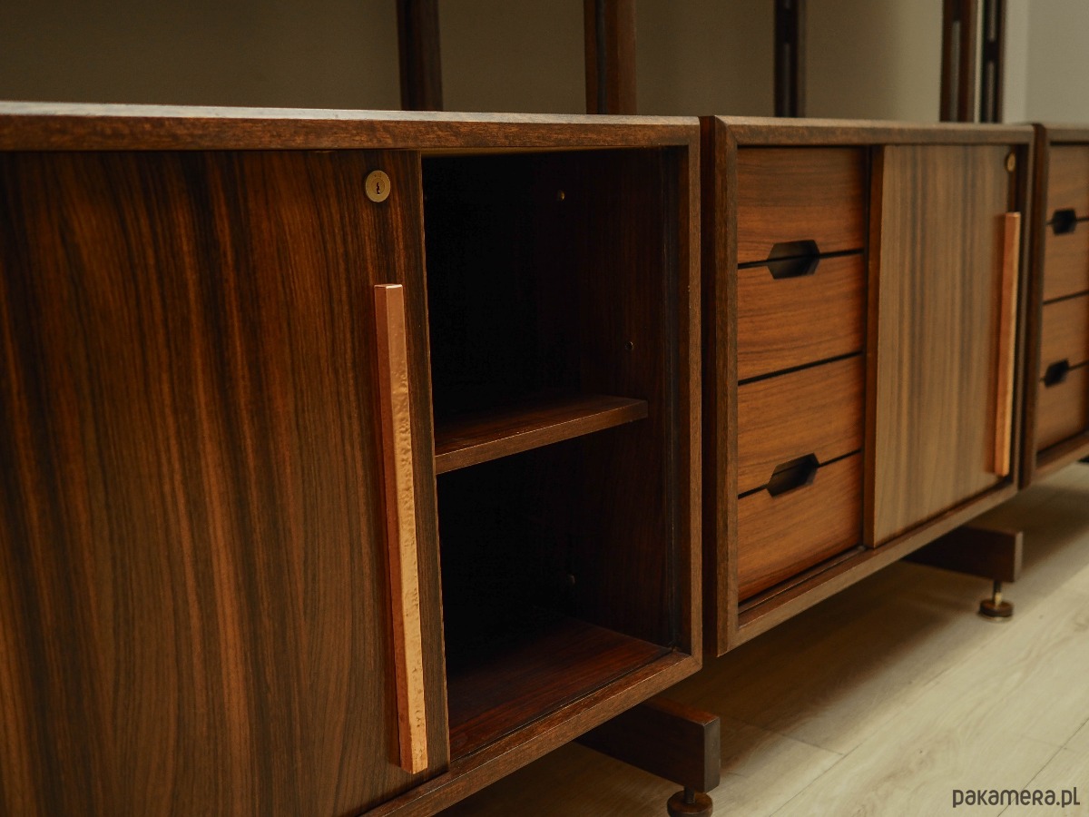 Regał systemowy palisandrowy, włoski design, lata 60, Włochy