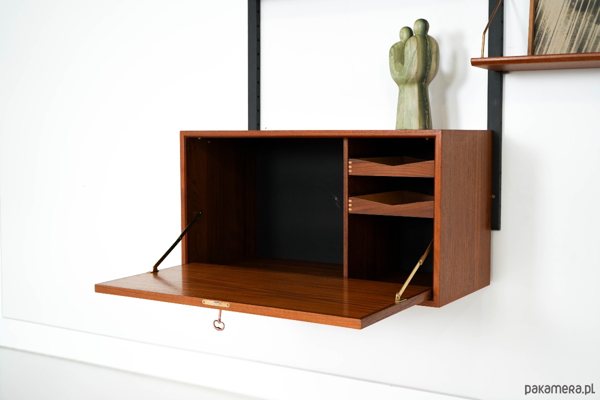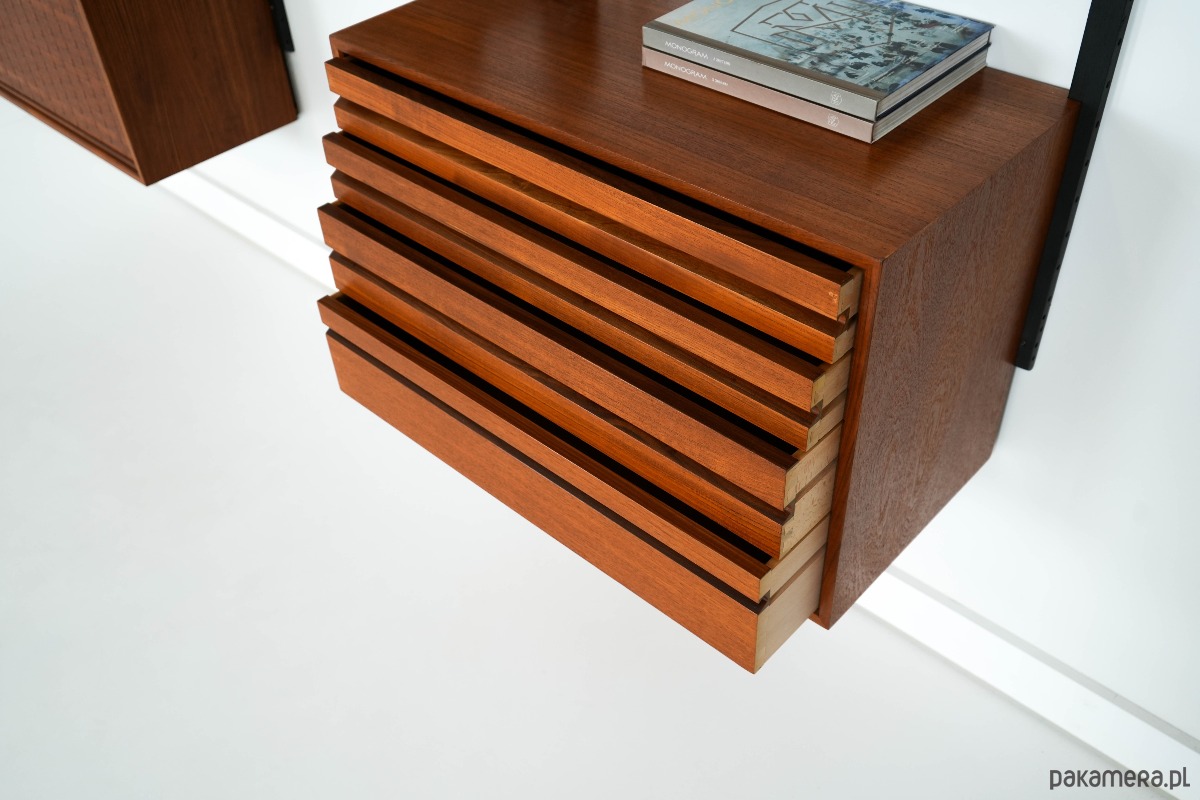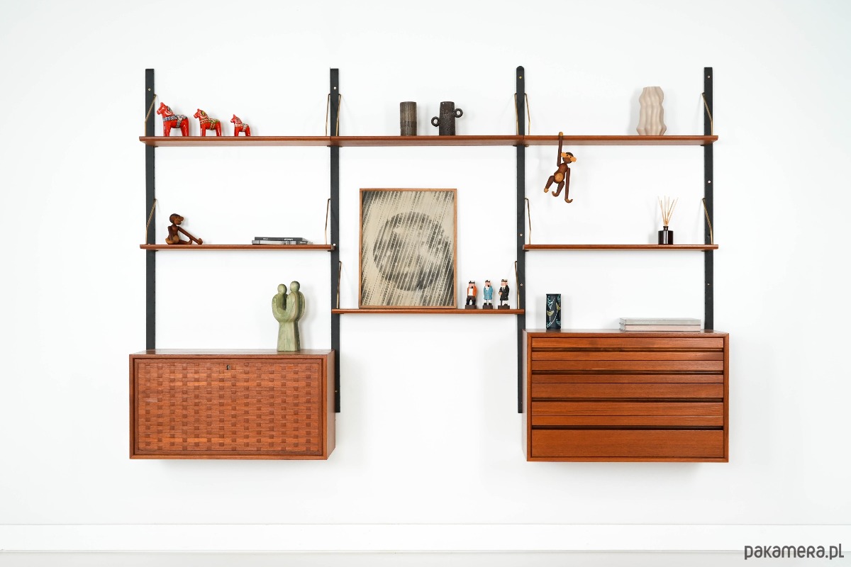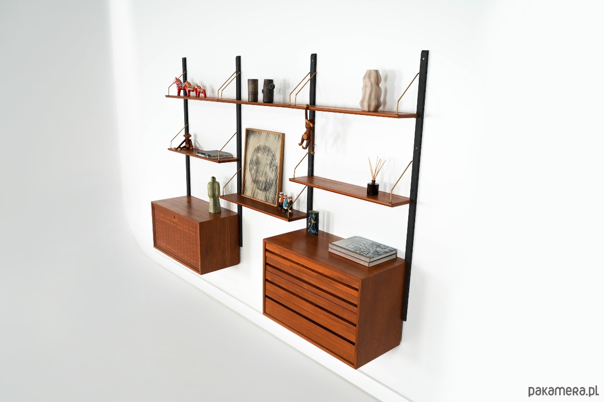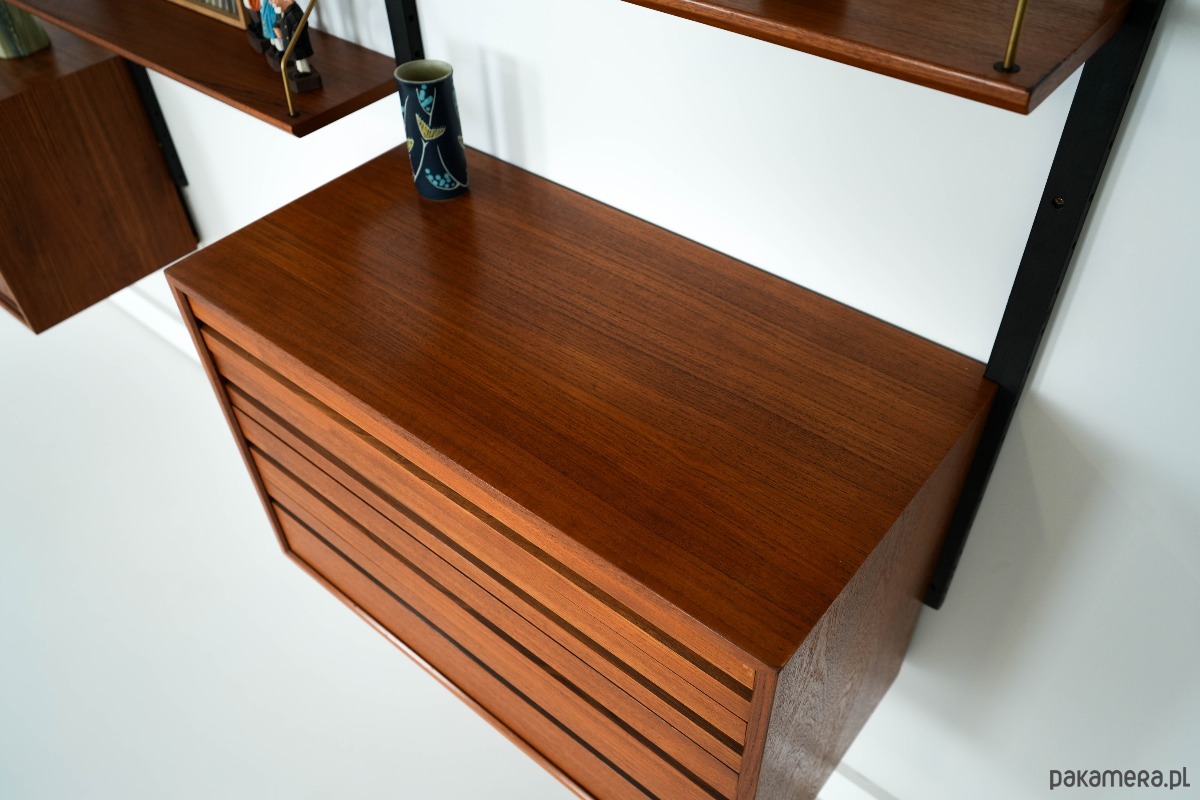 Regał systemowy wykonany został w latach 60-tych, zaprojektowany przez znanego duńskiego projektanta Poul'a Cadovius'a.