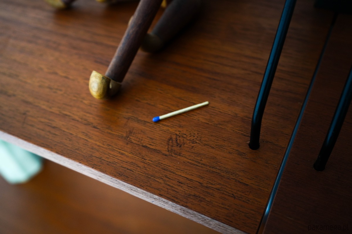 Stan: Powierzchnia mebla po odświeżeniu. Widoczne drobne zarysowania, obicia oraz wypełnione ubytki forniru. Większe ślady użytkowania zawsze przedstawiamy na zdjęciach. Produkt przygotowany bezpośrednio do użytkowania. W zestawie brak elementów montażowych.