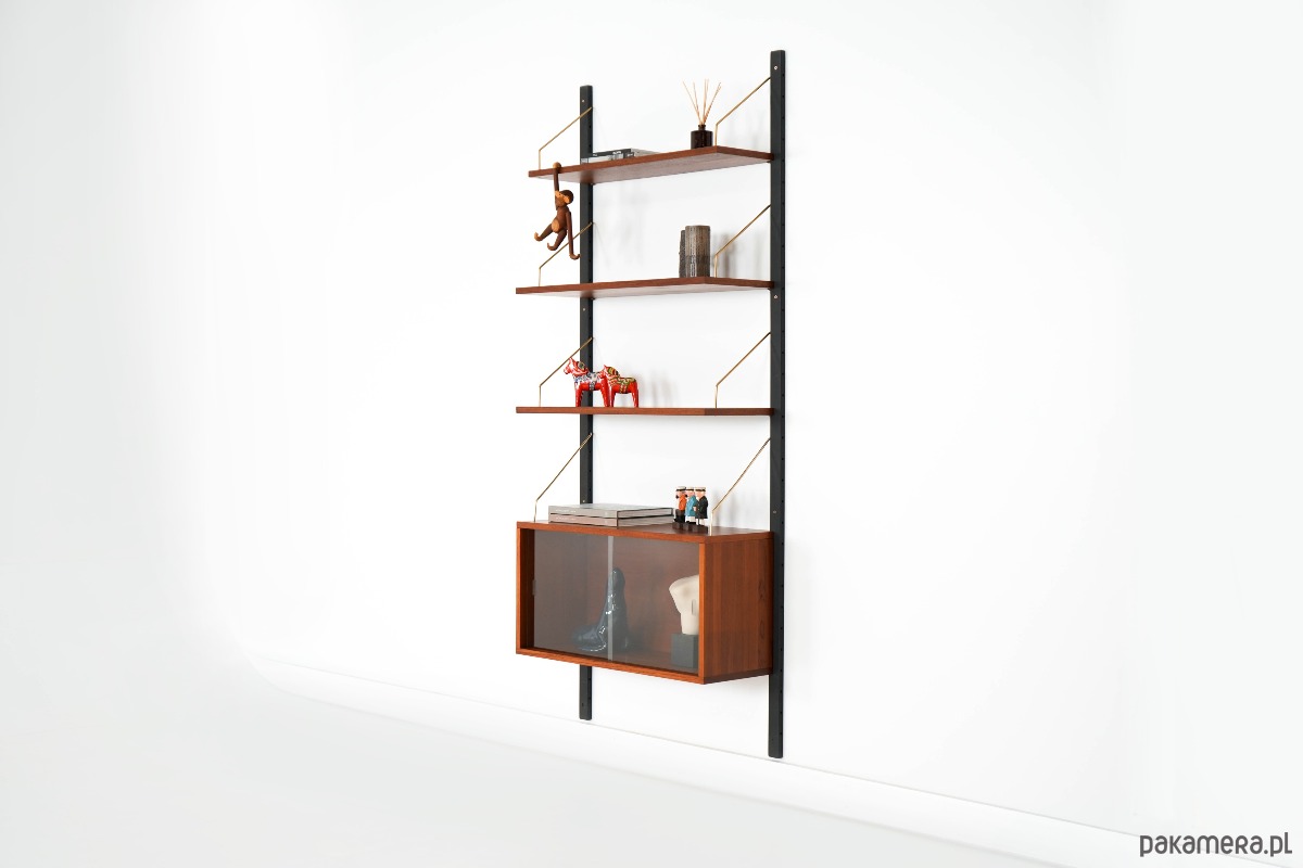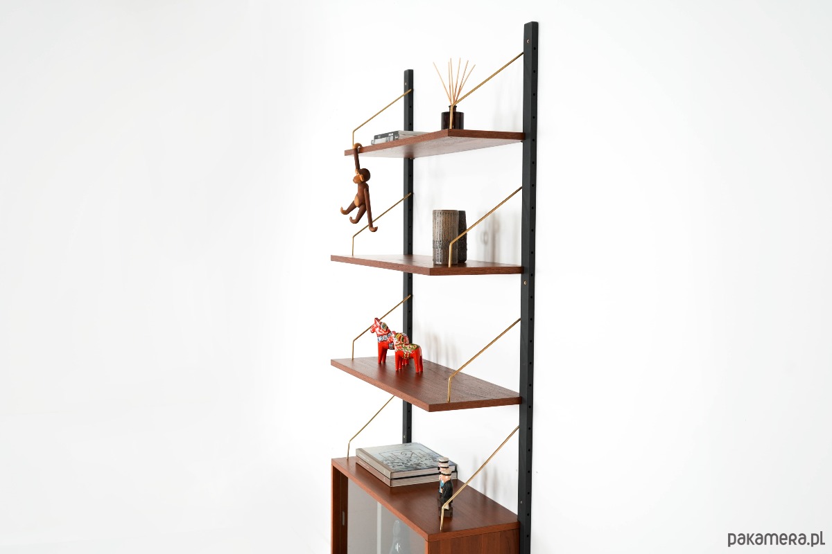 Regał systemowy tekowy, duński design, lata 60, produkcja: Dania