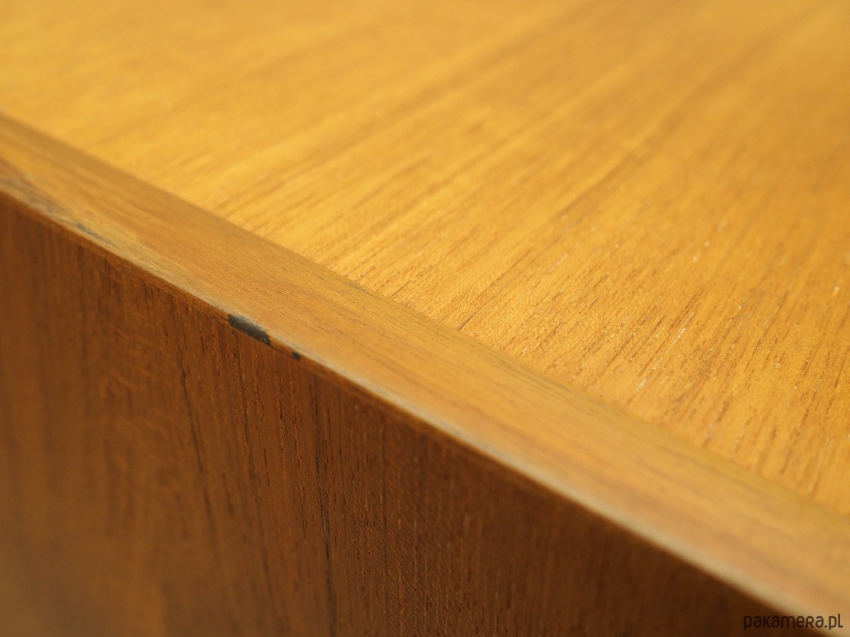 Stan: Powierzchnia mebla po odświeżeniu. Widoczne drobne zarysowania, obicia oraz wypełnione ubytki forniru. Większe ślady użytkowania zawsze przedstawiamy na zdjęciach. Produkt przygotowany bezpośrednio do użytkowania.
