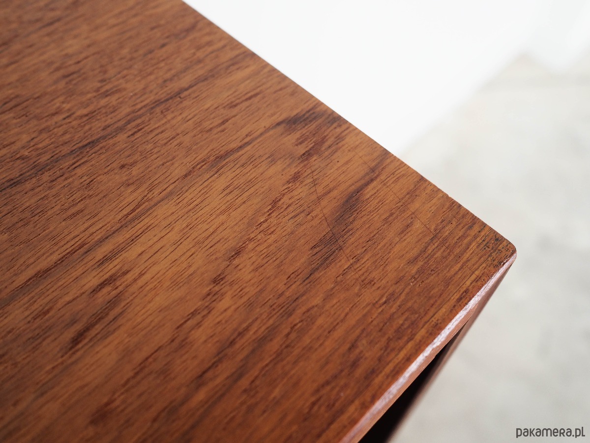 Stan: Powierzchnia mebla po odświeżeniu. Widoczne są drobne zarysowania, obicia oraz wypełnione ubytki forniru. Większe ślady użytkowania zawsze prezentowane są na zdjęciach. Produkt jest gotowy do użytku.