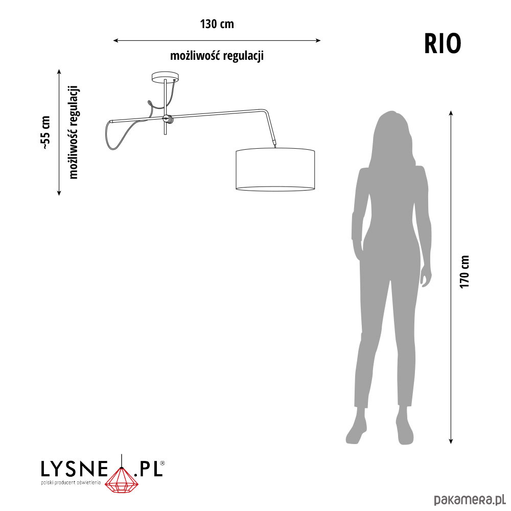 Wymiary lampy: wysokość - około 55 cm, szerokość - około 130 cm (regulacja rozpiętości)