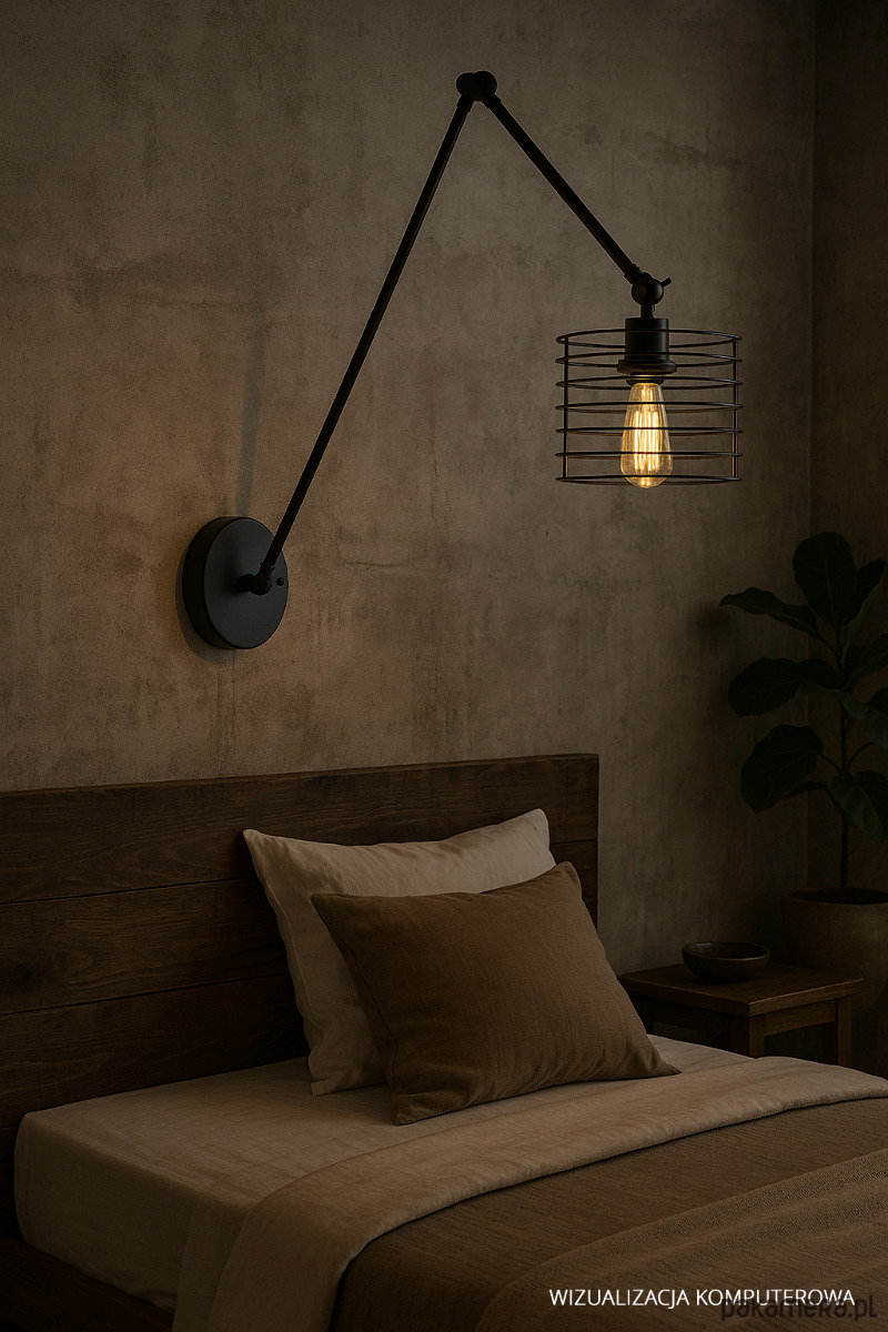 Regulowany kinkiet na wysięgniku ruchomym LIMA LOFT do czytania w sypialni