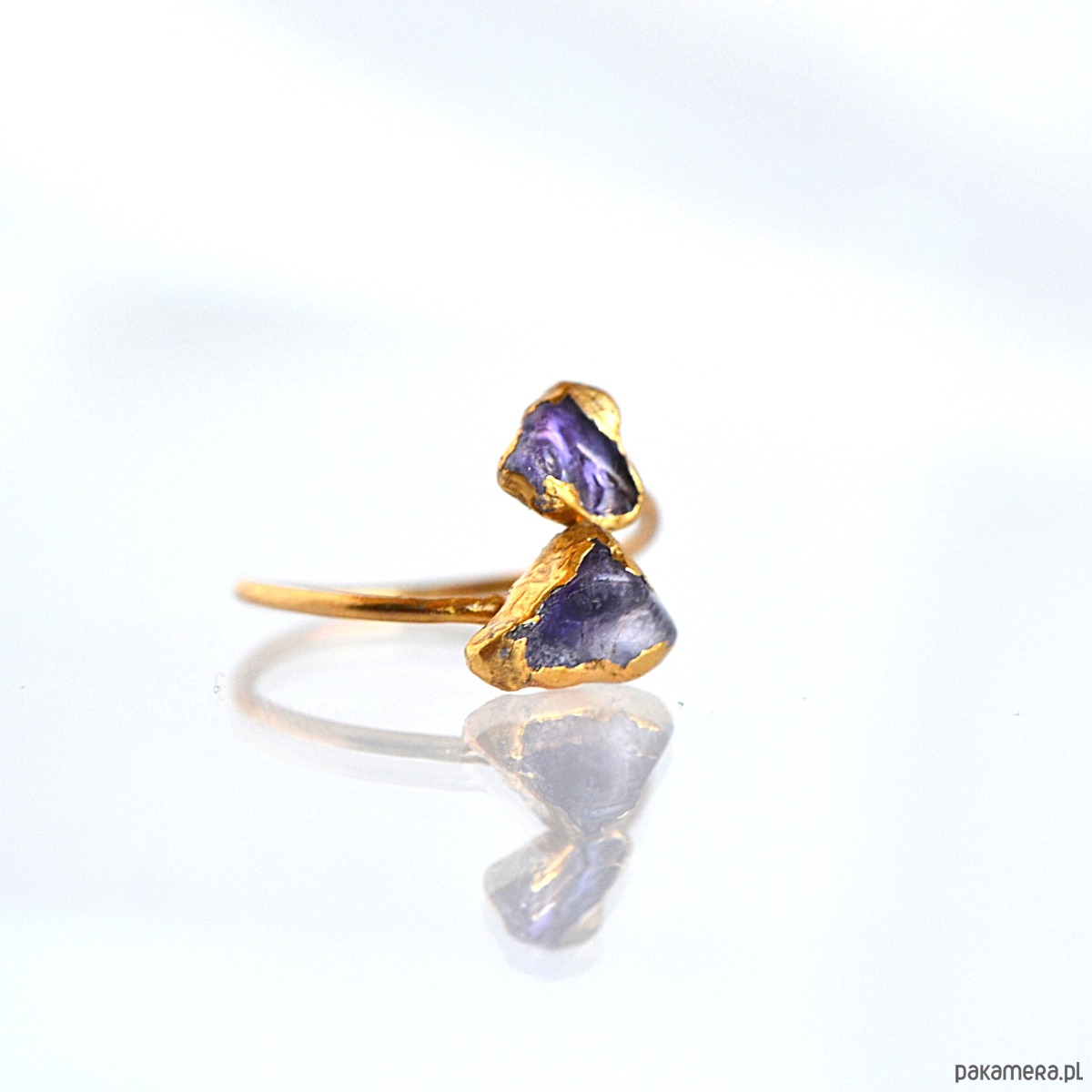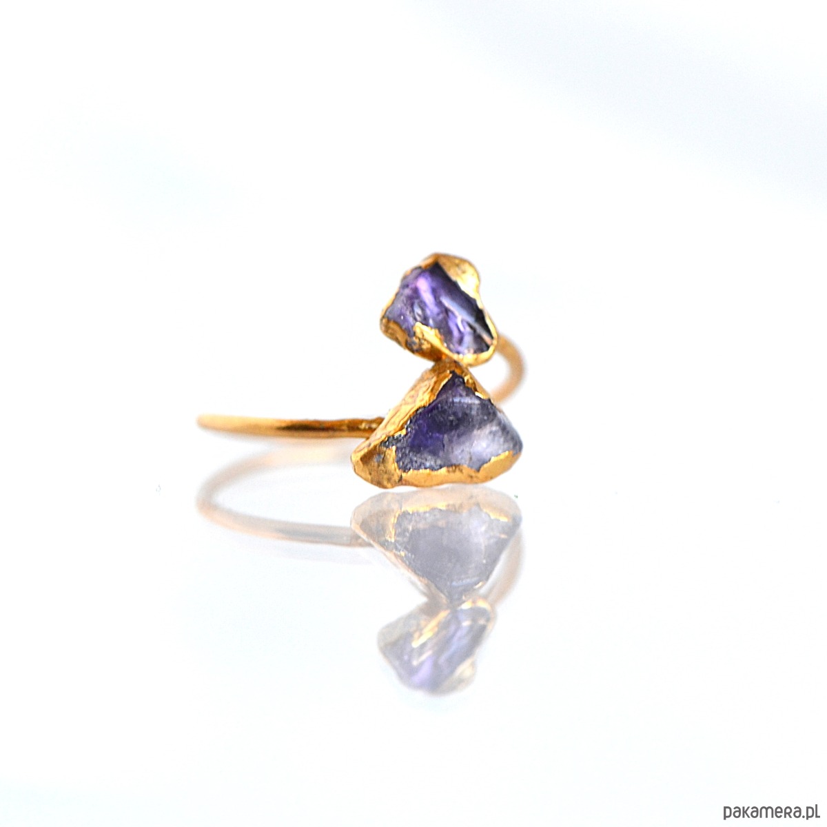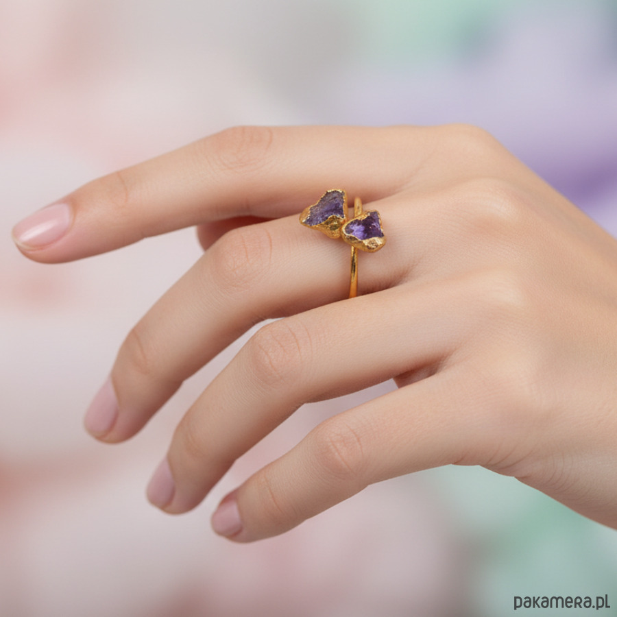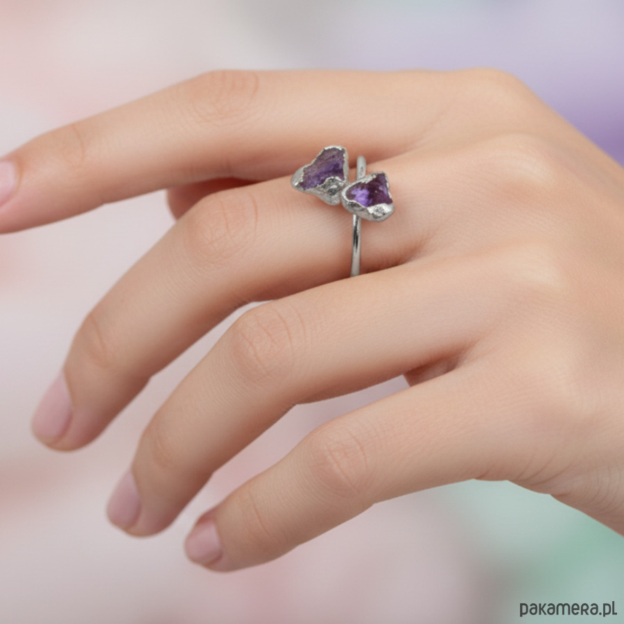 Ametyst to jeden z najbardziej cenionych kamieni szlachetnych, zachwycający głębokim, fioletowym odcieniem. Jego królewska barwa, od delikatnego lawendowego po intensywny fiolet, nadaje biżuterii wyjątkowy, luksusowy charakter. Naturalny blask ametystu pięknie komponuje się z organicznymi formami, tworząc harmonijną całość.