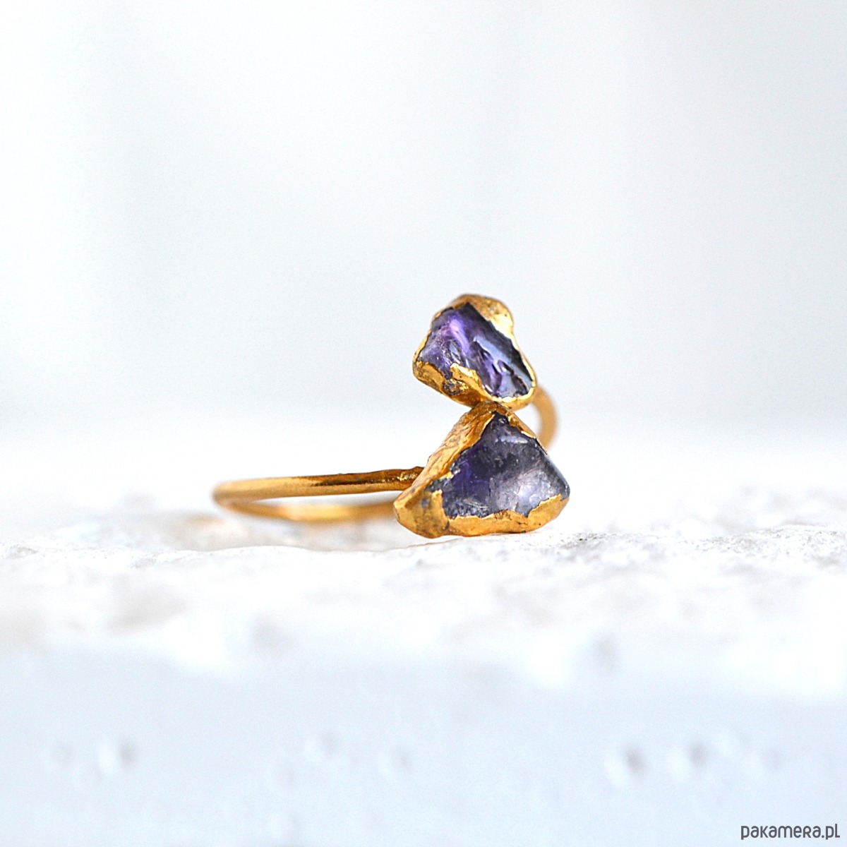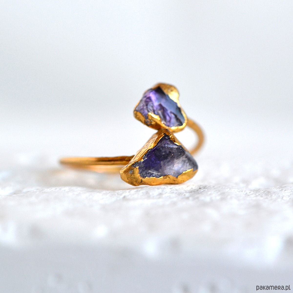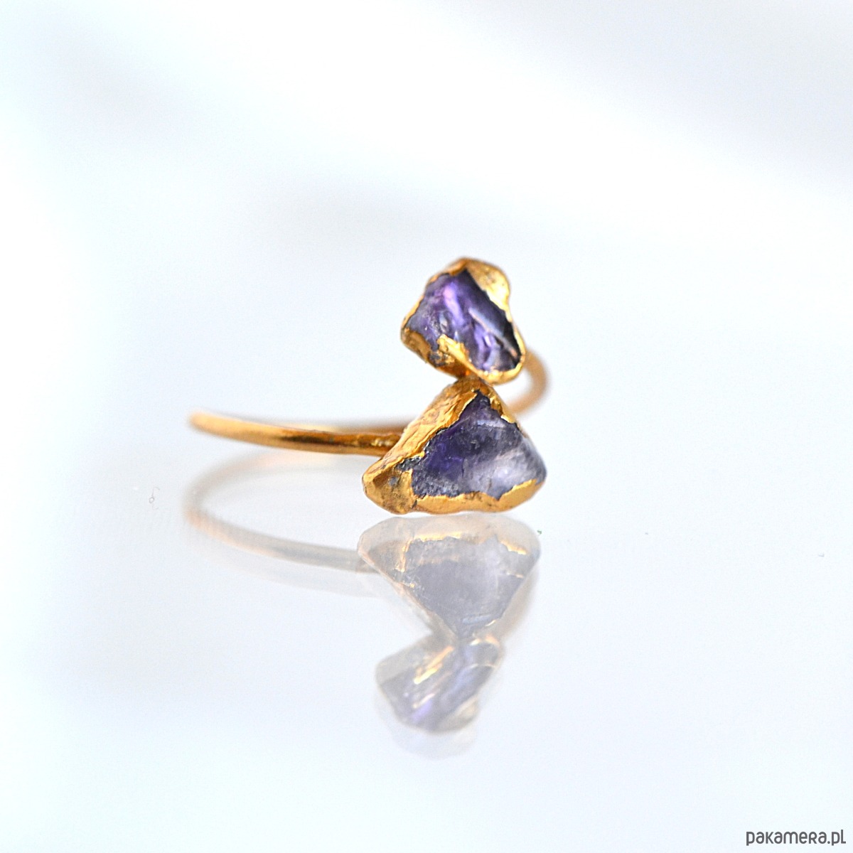 Ametyst to jeden z najbardziej cenionych kamieni szlachetnych, zachwycający głębokim, fioletowym odcieniem. Jego królewska barwa, od delikatnego lawendowego po intensywny fiolet, nadaje biżuterii wyjątkowy, luksusowy charakter. Naturalny blask ametystu pięknie komponuje się z organicznymi formami, tworząc harmonijną całość.