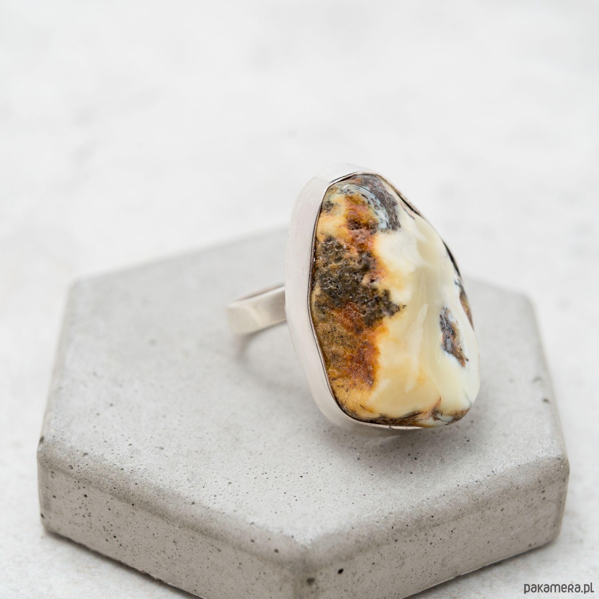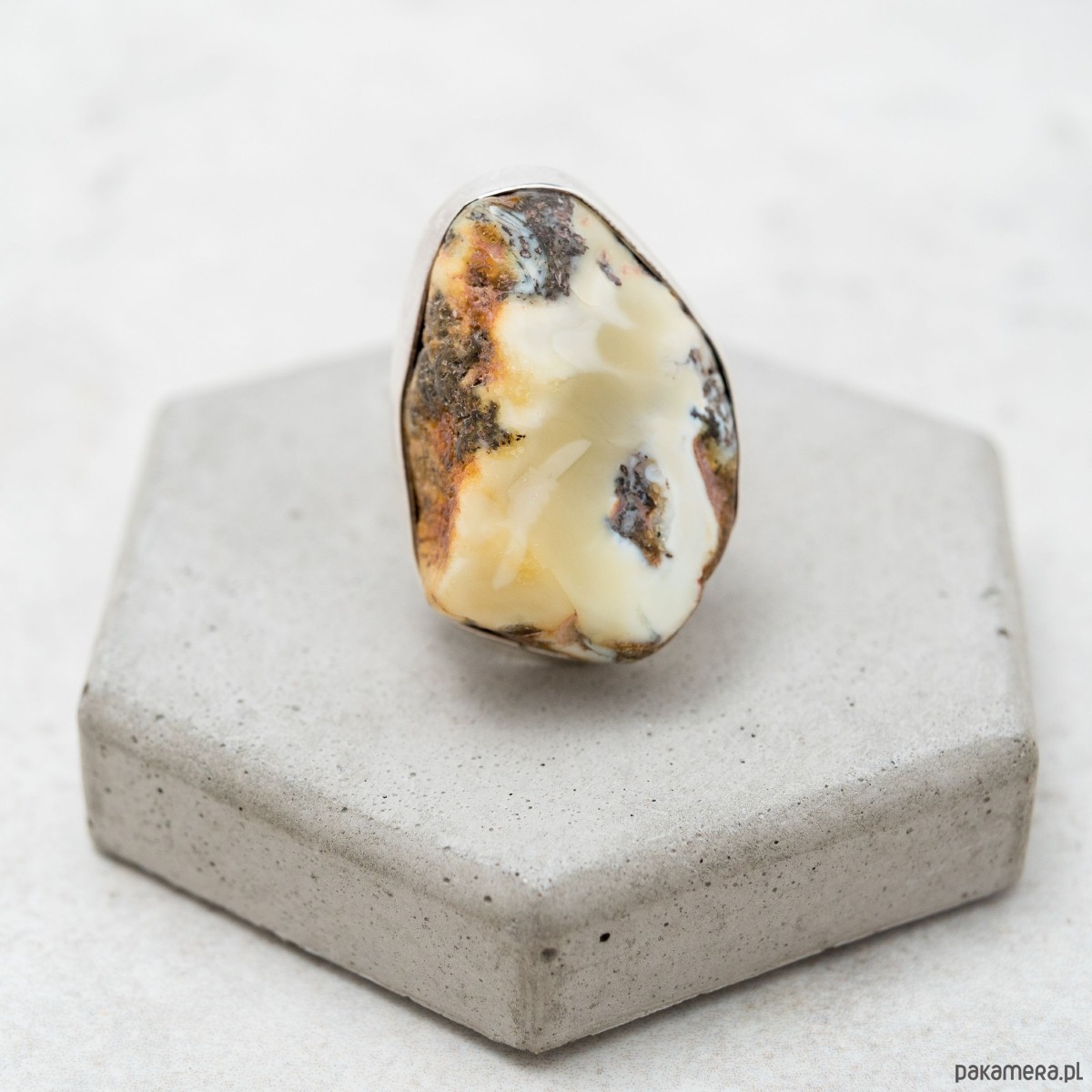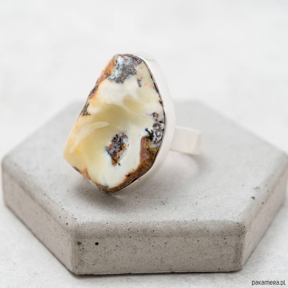 Regulowany pierścionek z bursztynem kremowym, pierścionek bursztynowy