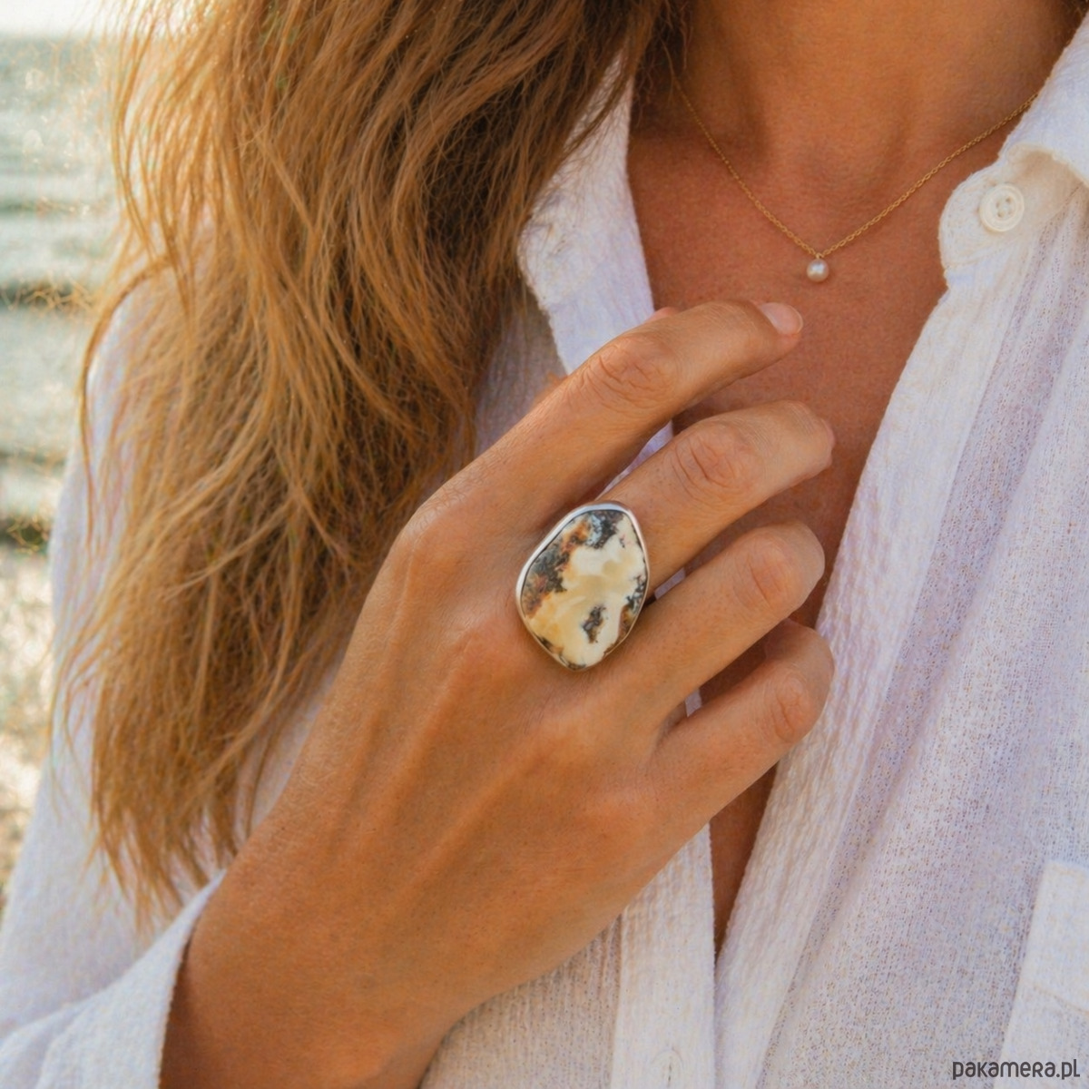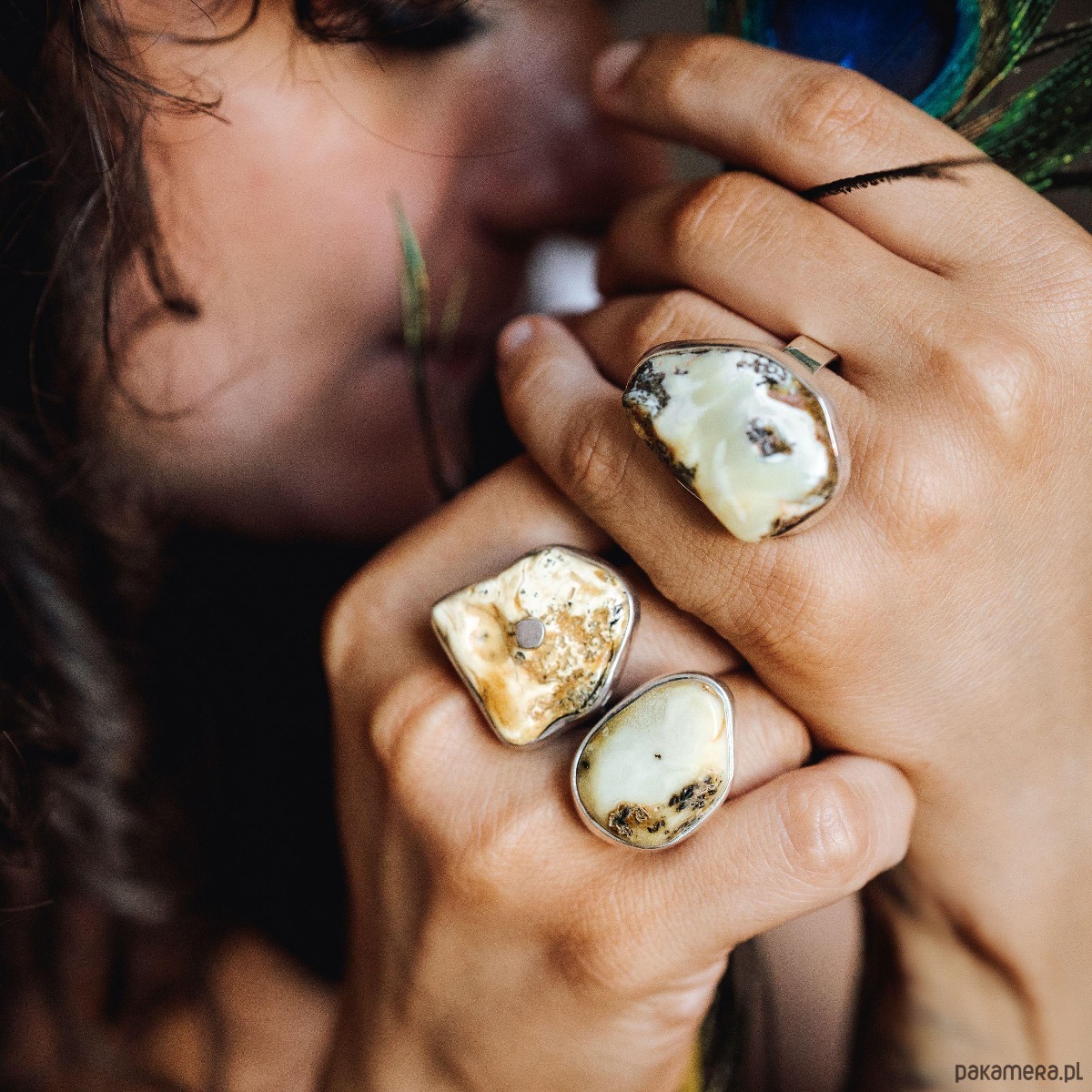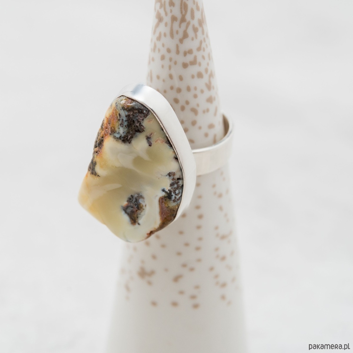 Regulowany pierścionek z bursztynem kremowym, pierścionek bursztynowy