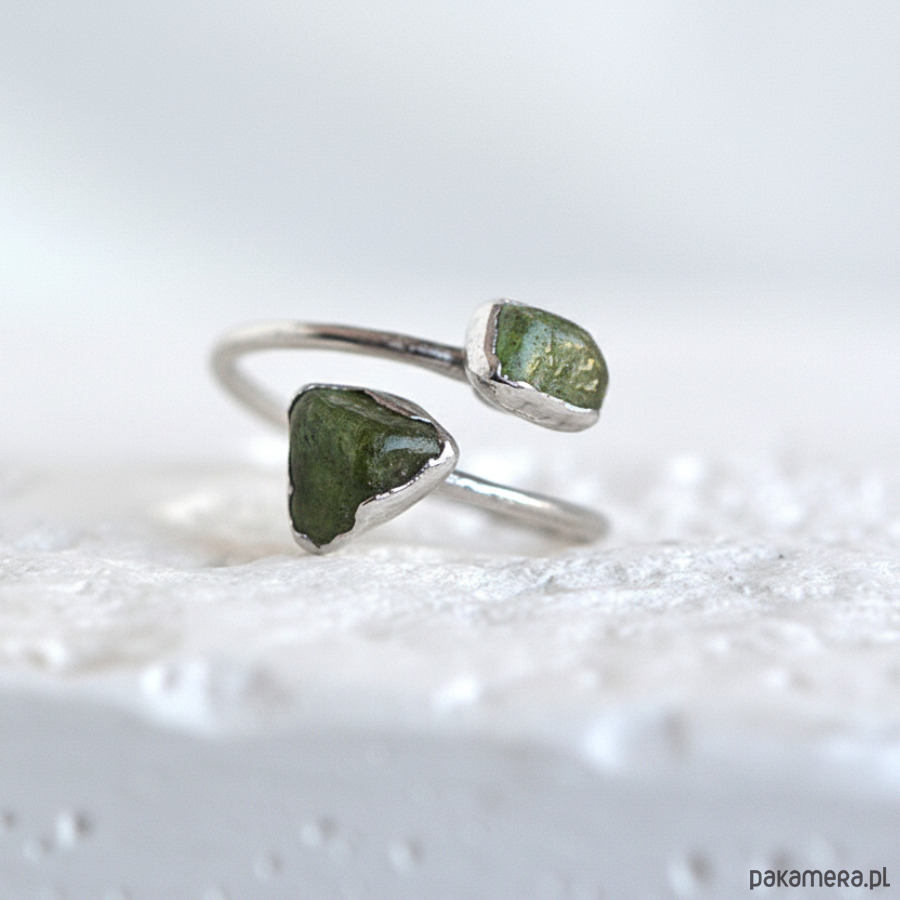 Epidot to niezwykły kamień o charakterystycznej zielono-żółtej barwie, która przypomina odcienie wiosennej przyrody. Jego naturalna, ziemista kolorystyka idealnie komponuje się z organicznymi formami biżuterii, tworząc harmonijną całość.