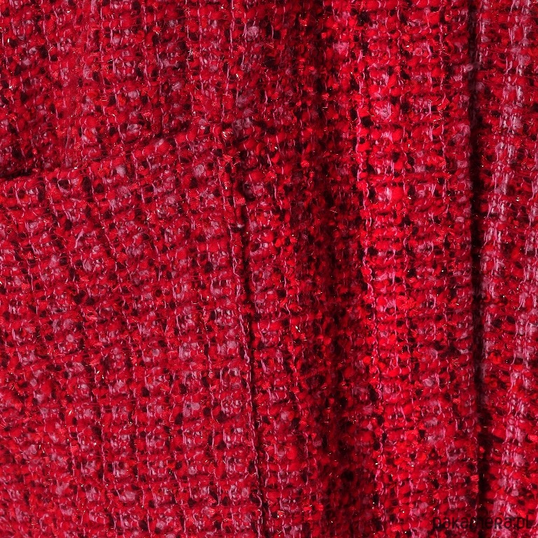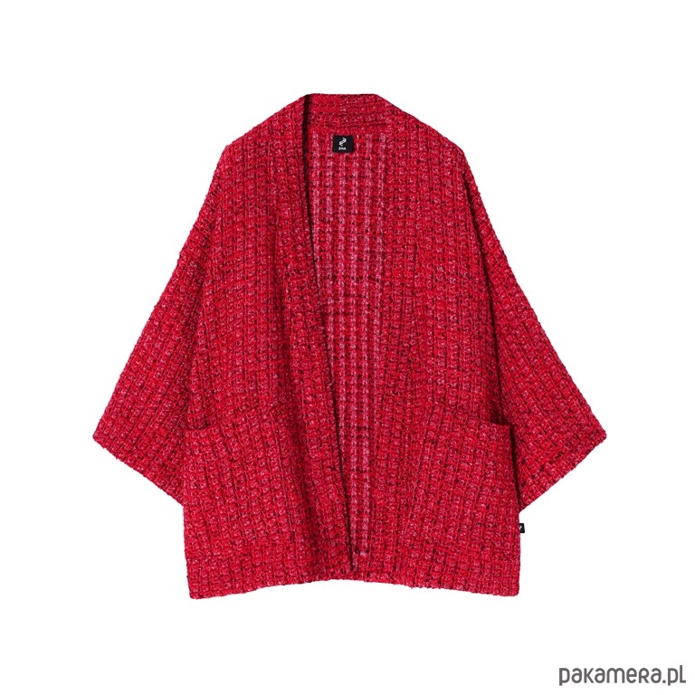 Kimono Rei uszyte jest z wyjątkowo miękkiej i przyjemnej w dotyku bawełniano wełnianej tkaniny. Doskonałej jakości włoski materiał, który mieni się różnymi odcieniami czerwieni i różu, poprzeplatany jest dodatkowo złotą nicią. Przepiękny efekt klasycznej chanelki zamknięty w geometrycznej formie kimono.
