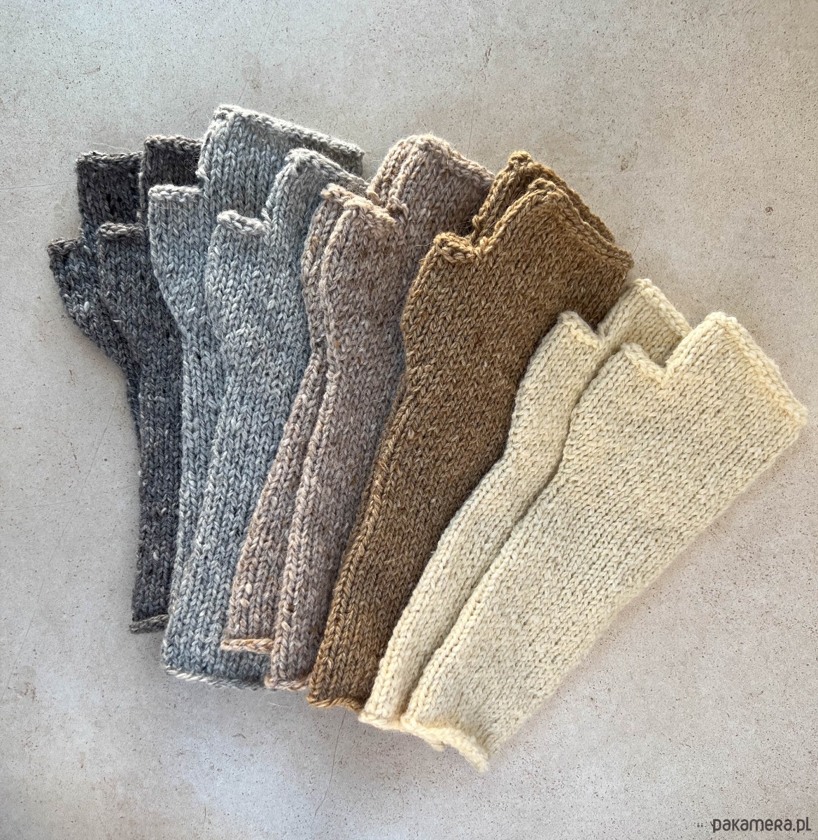 Ogrzej ręce Tweedowymi wełnianymi mitenkami. Mitenki są wykonane z mięciutkiej włóczki o składzie 50% Wełna, 25% Alpaka, 25% Wiskoza. Rękawiczki są bardzo miłe w dotyku i nie gryzą. Miękka tweedowa włóczka, z której wydziergane zostały rękawiczki bez palców to połączenie wełny merynosów, wełny alpaki – alpaca superfine i wiskozy. Włóczka powstała przez połączenie włókien razem z dodatkiem małych filcowych “tweedowych pętelek”, które tworzą cętki kolorystyczne.
