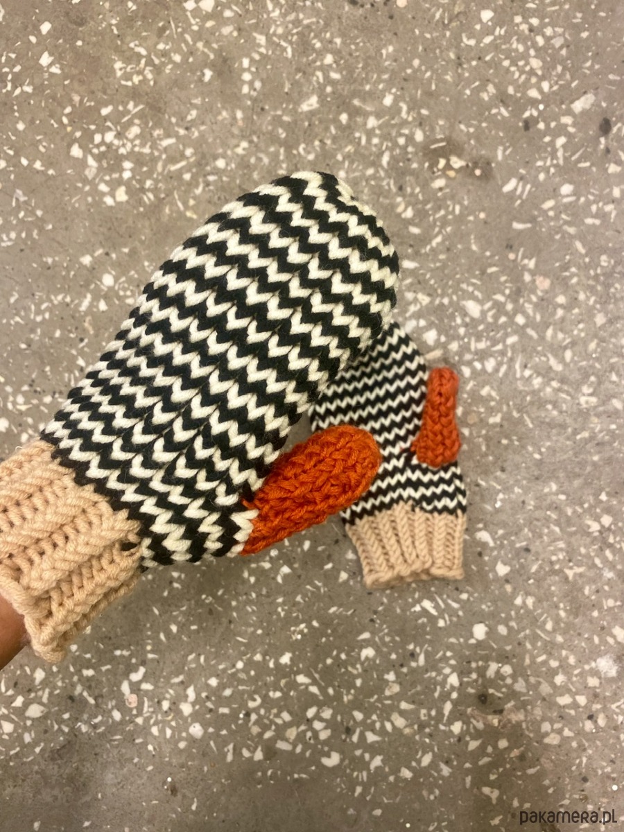 Rękawiczki jednopalczaste z wełny merino pomarańcz/ beż