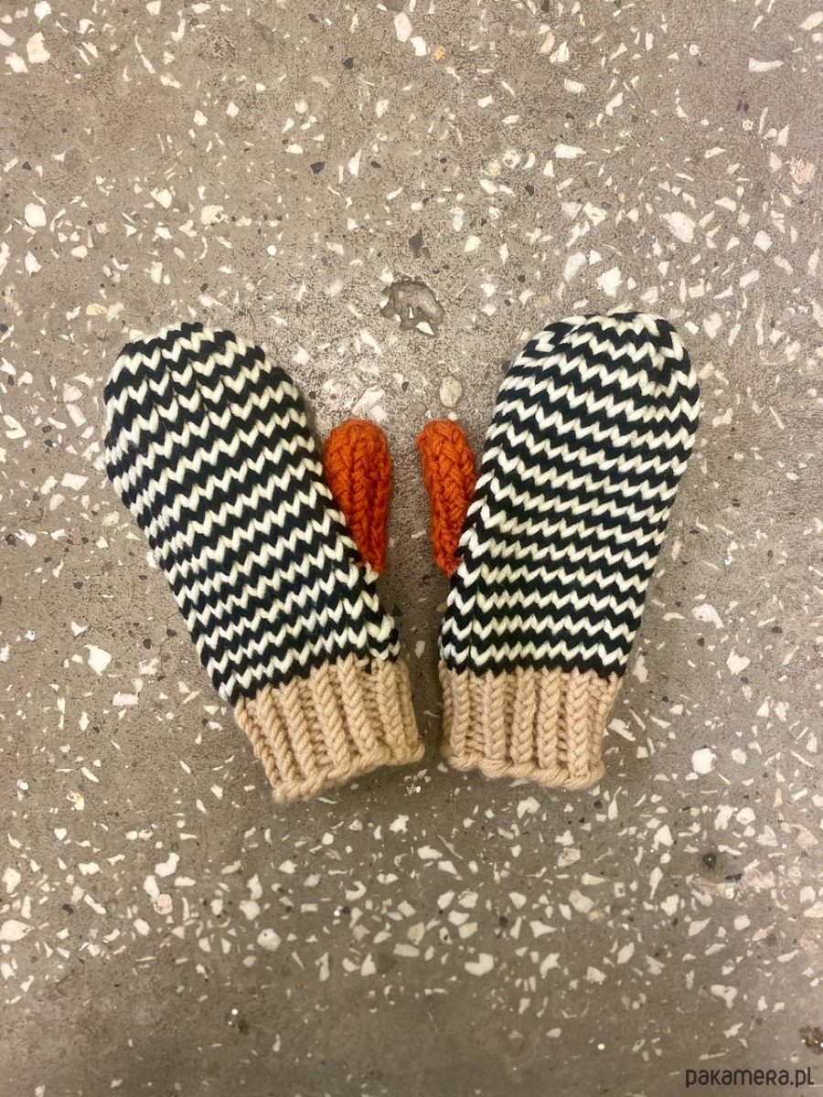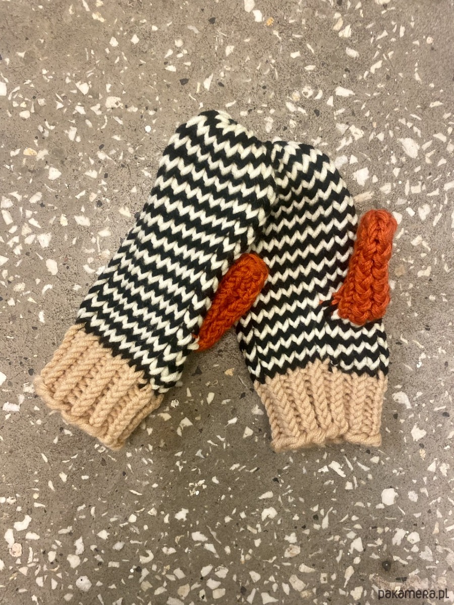 Rękawiczki wełniane wykonane ręcznie na szydełku.
