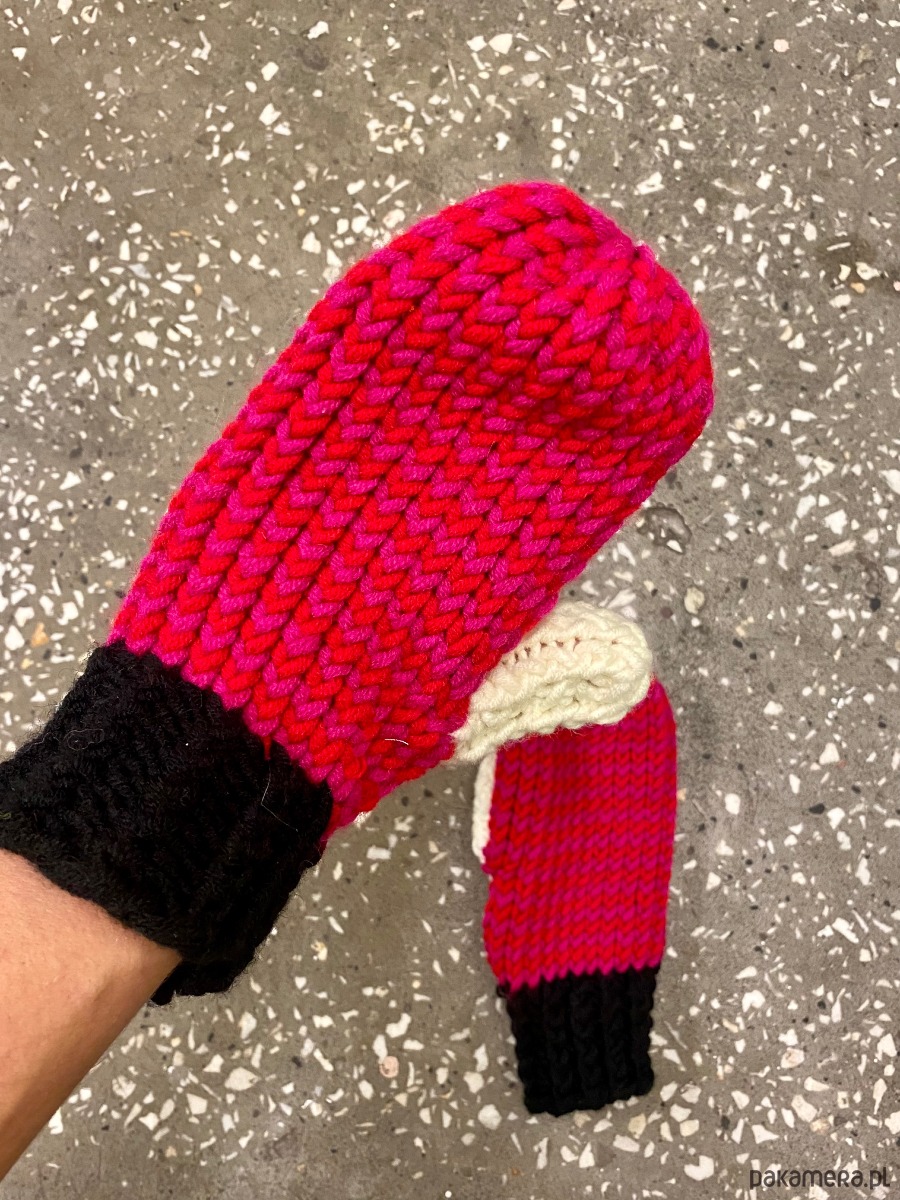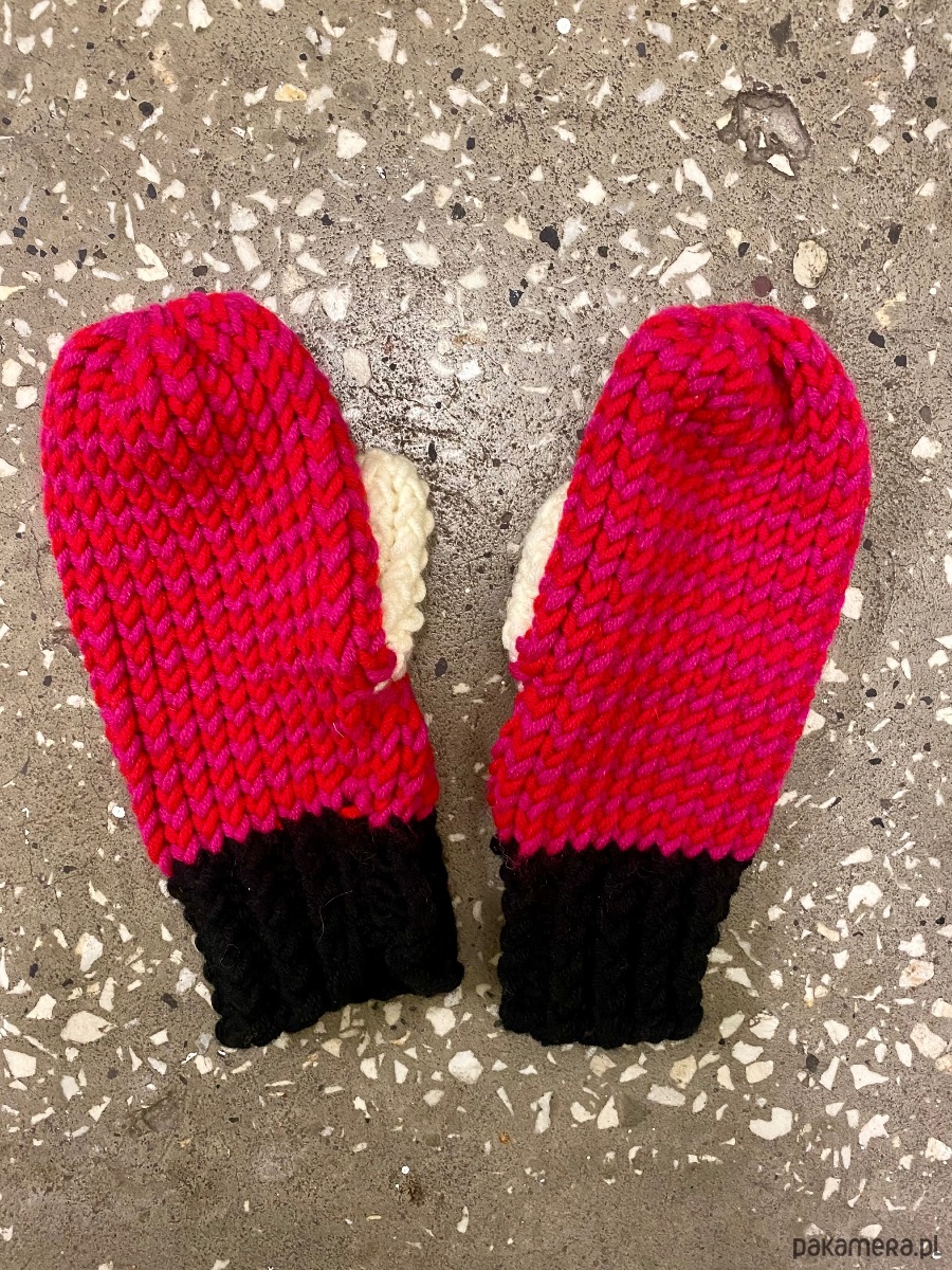 Rękawiczki wełniane wykonane ręcznie na szydełku.