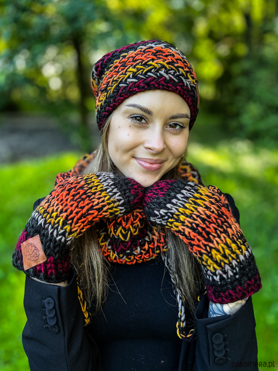 Rękawiczki merino z charakterem, robione na szydełku przez poznańskie Seniorki – czyli więcej serca niż w całym centrum handlowym. Skład? 50% merino, 50% akryl, 100% ciepła. Jeden palec, żeby nie komplikować sprawy, i sznureczek, żeby nigdy się nie zgubiły (bo Seniorki wiedzą, jak to bywa). Idealne na zimę, spacer albo bitwę na śnieżki w wersji retro.