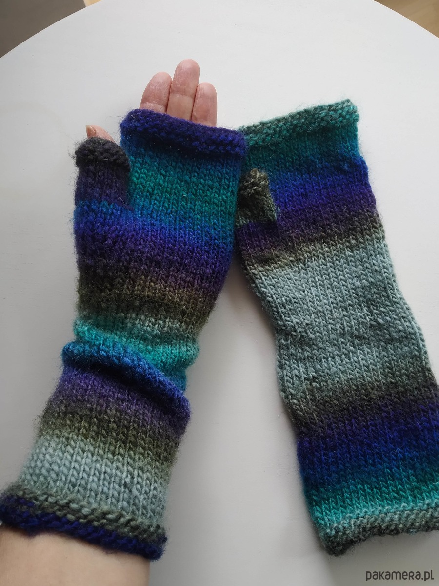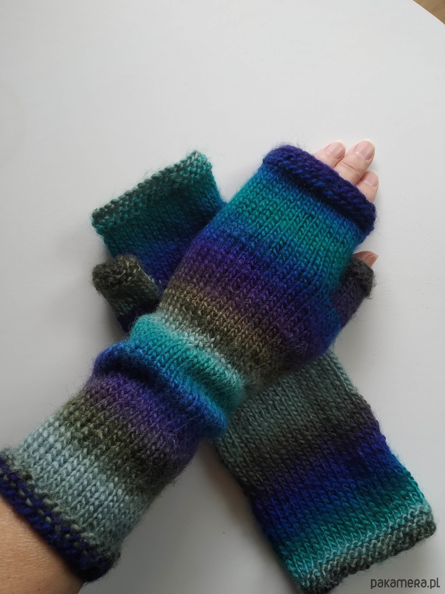 Rękawiczki mitenki zrobione ręcznie z mieszanki wełny z akrylem. (20%,80%).