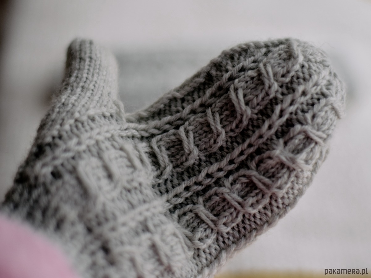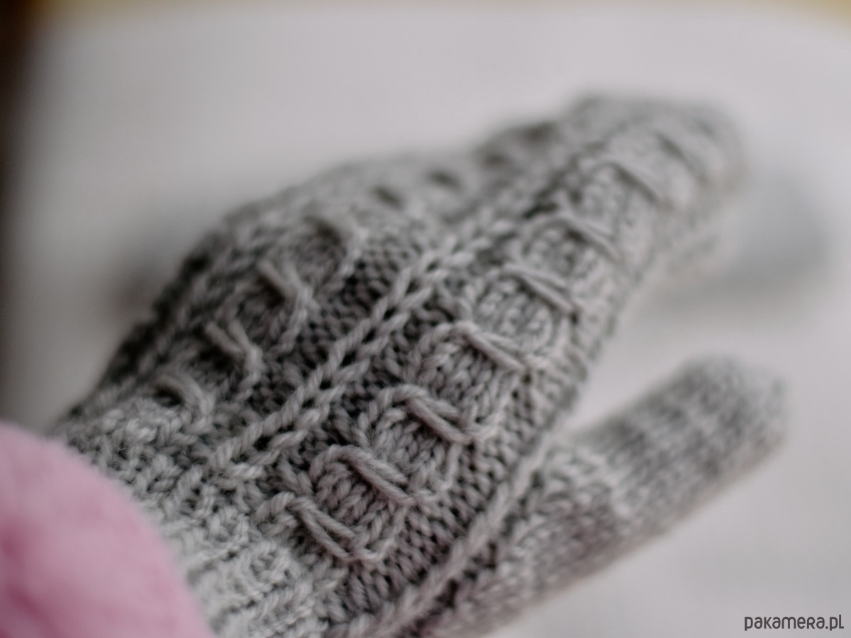 Rękawiczki z jednym palcem z pięknym warkoczowym wzorem. Robione na drutach z polskiej wełnianej włóczki, dzięki czemu odziane w nie dłonie otulone są ciepłem. Włóczka ma wyraźny splot, jest bardzo miękka i przyjemna, a wydziergane z niej rękawiczki w żywych kolorach ucieszą każdego.