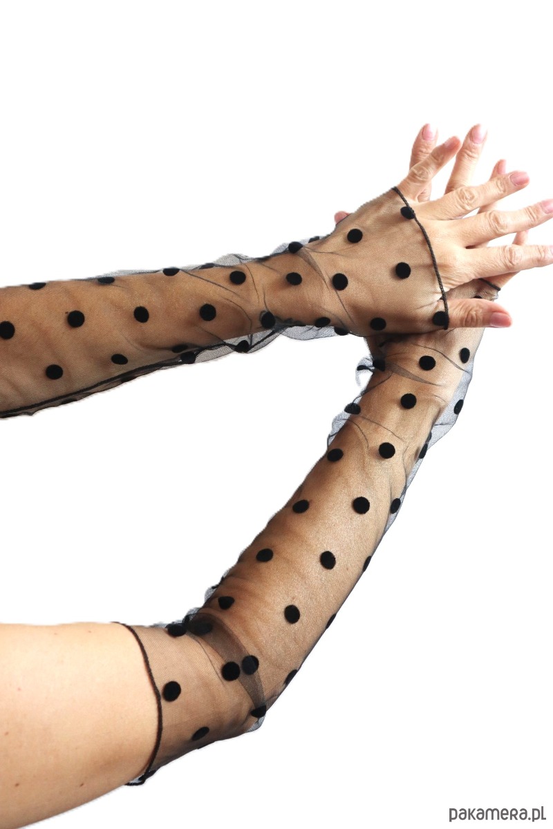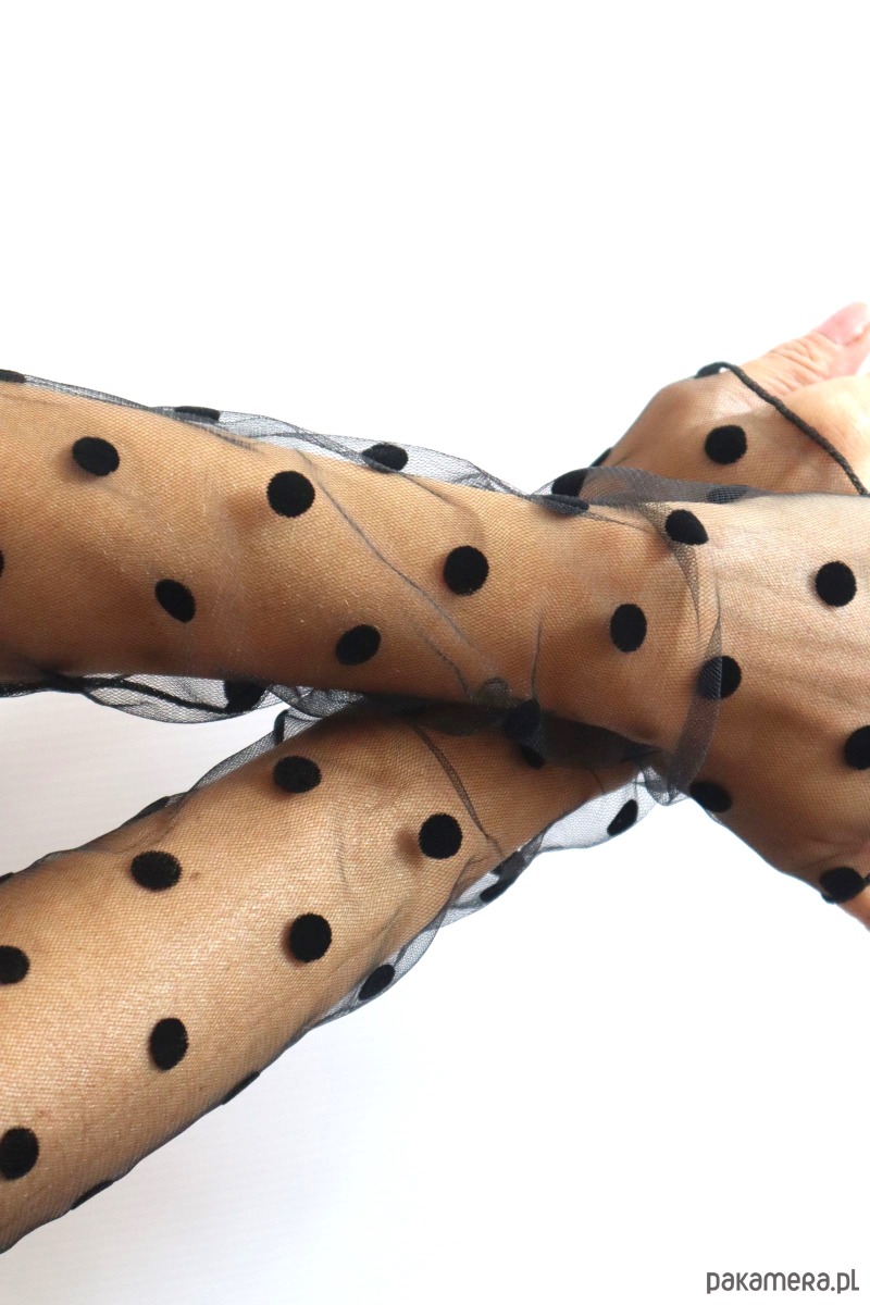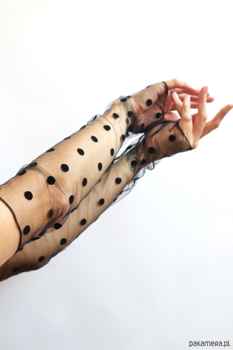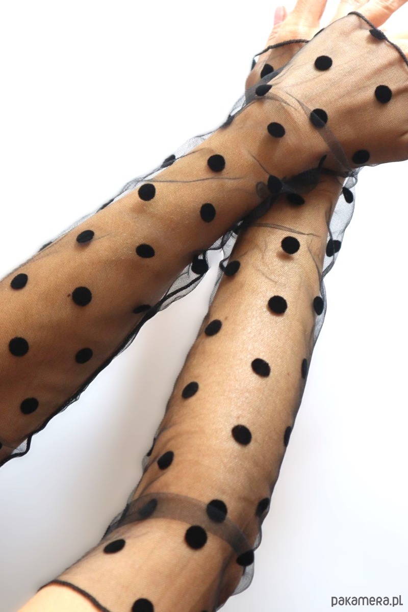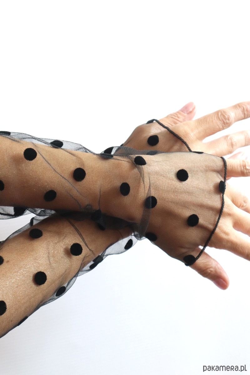 Rękawki gładkie, duże czarne kropki.