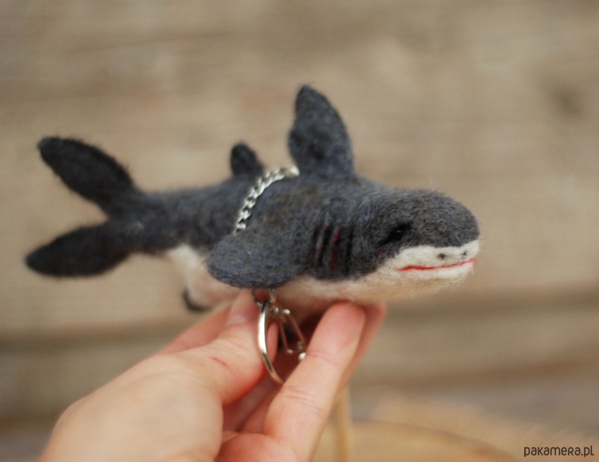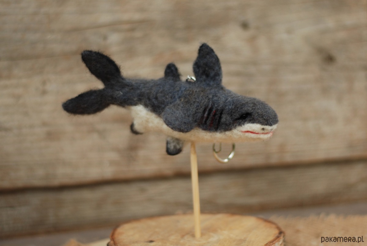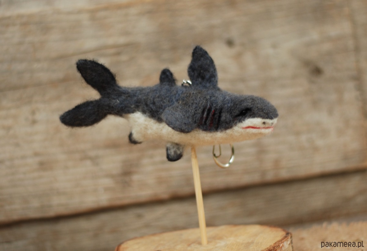 Rekin wykonany metodą filcowania na sucho z wełny merynos.